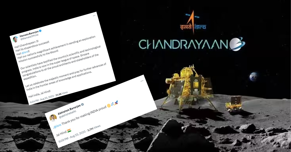 অন্যদিকে ইসরোকে ধন্যবাদ জানিয়েছেন তৃণমূল কংগ্রেসের সর্বভারতীয় সাধারণ সম্পাদক অভিষেক বন্দ্যোপাধ্যায়। ট্যুইটারে তিনি লিখেছেন, ভারতকে গর্বিত করার জন্য ISRO-কে ধন্যবাদ। তৃণমূল কংগ্রেসের তরফে ট্যুইট করে বলা হয়েছে, প্রতিটি ভারতীয়ের জন্য একটি গর্বের মুহূর্ত! ইসরোকে আন্তরিক অভিনন্দন জানাই এমন একটি কৃতিত্ব অর্জনের জন্য। ইতিহাস সৃষ্টিতে তাদের অবিরাম অবদানের জন্য চন্দ্রযান-৩ টিমকে আমাদের শুভেচ্ছা!”