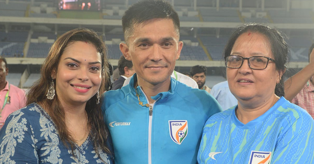 বিদায়ী ম্যাচ ঘিরে সুনীল সাগরে ভাসল কলকাতা। আর দর্শকঠাসা ৬০ হাজারি যুবভারতী যেন গোটা ভারত। বেঙ্গালুরু, দিল্লি, কেরল, তামিলনাড়ু থেকে এসেছেন ভক্তরা। সুনীলকে (Sunil Chhetri) নিয়ে অভিনব টিফো, ব্যানার, কাট আউট। আইএফএ-র উদ্যোগে সুনীল-মুখোশ পরে গ্যালারিতে সমর্থকরা, অনেকের হাতেই জাতীয় পতাকা। মুখে অধিনায়কের নামে জয়ধ্বনি। গ্যালারিতে প্রাক্তন সতীর্থরা। ফেডারেশনের বড় কর্তারা সবাই হাজির সুনীল-বিদায় স্মরণীয় করে রাখতে। কিন্তু শেষটা ভাল হল না। বিষাদের মধ্যেই সুনীলের স্ত্রী সোনম ভট্টাচার্য বললেন, “না চাইলেও এই দিনটা দেখতে হল। তবে আমি চাই, ছেলে ধ্রুবর বাবা হিসেবে সুনীল বেশি সময় দিক পরিবারকে।”
