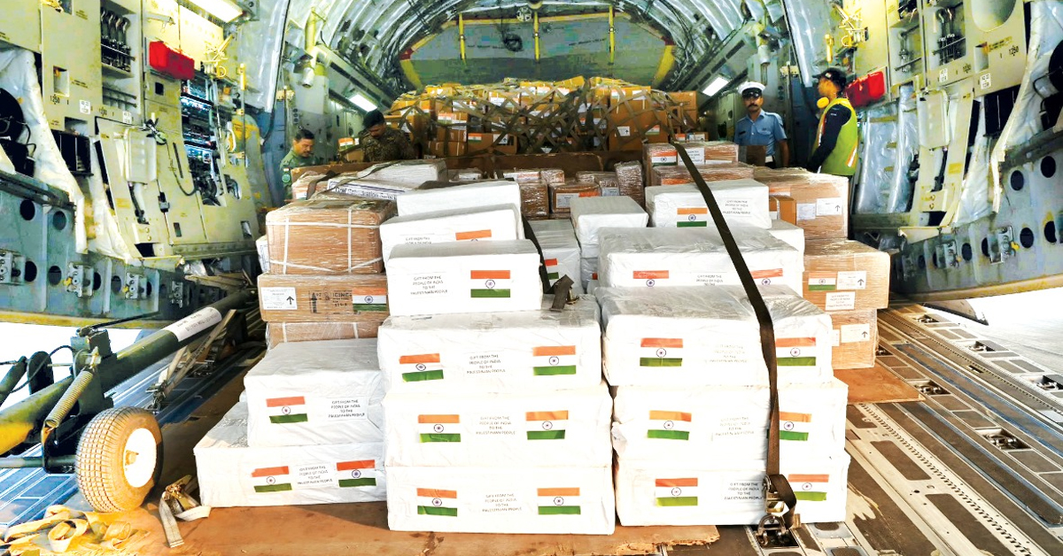 বিদেশ মন্ত্রকের তরফে জানানো হয়েছে, রবিবার ভারত থেকে প্যালেস্টাইনের উদ্দেশে রওনা দিয়েছে বায়ুসেনার সি-১৭ বিমান। বিদেশ মন্ত্রকের মুখপাত্র অরিন্দম বাগচী ট্যুইট করে জানান, প্যালেস্টাইনের মানুষের জন্য ৬.৫ টন ওষুধ-সহ মোট ৩২ টন ওজনের ত্রাণ পাঠানো হচ্ছে। তার মধ্যে রয়েছে স্লিপিং ব্যাগ, চিকিৎসার সামগ্রী, জল পরিশোধনের ট্যাবলেট। এদিনই মিশরের এল-আরিশ বিমানবন্দরে পৌঁছে যায় ভারতের ত্রাণসামগ্রী ভরা বিমান। এদিকে মিশরের পক্ষ থেকে প্যালেস্টাইনকে সতর্ক করে বলা হয়েছে, গাজা (Gaza) ভূখণ্ডের শিশু-মহিলা ও দুর্গতদের জন্য পাঠানো ত্রাণসামগ্রী যদি হামাস জঙ্গিগোষ্ঠী হাতিয়ে নেয়, তাহলে গাজায় ত্রাণ ও মানবিক সাহায্য পাঠানো বন্ধ করে দেওয়া হবে।
