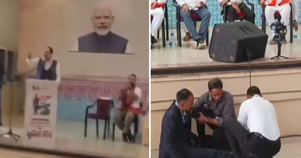 নিজেদের লক্ষ্য পূরণ করতে যে কোনও পথ অবলম্বন করতে পারে কেন্দ্রের বিজেপি নেতারা, ফের সেই নজির রাখলেন খোদ জে পি নাড্ডা। ভদোদরায় সর্দার ঐক্য যাত্রায় বক্তব্য রাখছিলেন নাড্ডা। সেই সময় ঠিক মঞ্চের সামনে হঠাৎই সংজ্ঞা হারিয়ে পড়ে যান এক নিরাপত্তা কর্মী। কিন্তু সেদিকে ফিরেও তাকালেন না নাড্ডা। নিজের বক্তৃতা চালিয়ে যেতে লাগলেন। অন্যান্য নিরাপত্তা কর্মীরা দ্রুত তাঁকে উদ্ধার করেন। অথচ মঞ্চে উপস্থিত কোনও বিজেপি নেতৃত্ব একবারের জন্য এগিয়ে এলেন না উদ্ধার বা সাহায্য করতে।