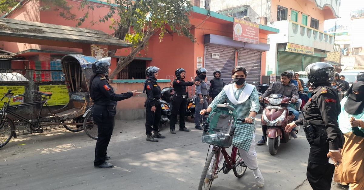 সংবাদদাতা, মালদহ : মালদহ জেলা পুলিশের মহিলা পুলিশ অফিস টাইম এবং স্কুলের সময়ে ইভটিজিং রুখতে এবং যানবাহন চালকদের সচেতন করতে রাস্তায় নেমে প্রচার চালাল। শুক্রবার সকালে অফিস ও স্কুলের সময়ে মালদা শহরের পিরোজপুর এলাকার একটি গার্লস হাইস্কুলের সামনে রীতিমতো অভিযান চালায় মহিলা পুলিশ বাহিনীর ওই দল। কালো পোশাকধারী মহিলা পুলিশ বাহিনীর দলটি রীতিমতো ইভটিজারদের নজরে রাখতে শুরু করে। যদিও পুলিশের স্কোয়াড বাহিনী দেখে কোনওরকম ইভটিজিং-এর ঘটনা ঘটেনি। তবে রাস্তা পারাপারের ক্ষেত্রে স্কুলের ছাত্রীদের এবং খুদে শিশুদের রীতিমতো সহযোগিতা করে মহিলা পুলিশের ওই দলটি।