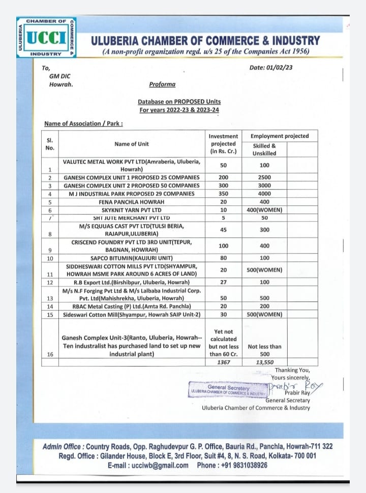 উলুবেড়িয়া চেম্বার অফ কমার্স অ্যান্ড ইন্ডাস্ট্রিজের সাধারণ সম্পাদক প্রবীর রায় জানান, ‘‘এর মধ্যে ৩০ শতাংশ কাজ হয়ে গেছে। বাকি কাজও চলছে। আগামী অর্থবর্ষের মধ্যে প্রস্তাবিত এই বিনিয়োগের পুরোটাই হবে। তার জন্য প্রয়োজনীয় সমস্ত পদক্ষেপ ইতিমধ্যেই নেওয়া হয়েছে। এছাড়াও উলুবেড়িয়ার নিমদিঘিতে প্রায় ১ বিঘা জায়গার ওপর ক্ষুদ্র, ছোট ও মাঝারি শিল্পের একটি হাব তৈরিরও প্রস্তাব দেওয়া হয়েছে। সেখানে বিভিন্ন হস্তশিল্পের প্রশিক্ষণ ও বিপণনের ব্যবস্থা থাকবে।’’ জানা গিয়েছে, ১৩৬৭ কোটি টাকা বিনিয়োগে ক্ষুদ্র, ছোট ও মাঝারি শিল্পে ১৬টি হাব তৈরি হচ্ছে। এর মধ্যে ৩টি শিল্পতালুকে শুধুমাত্র দেড় হাজার মহিলার কর্মসংস্থানের ব্যবস্থা করা হয়েছে।