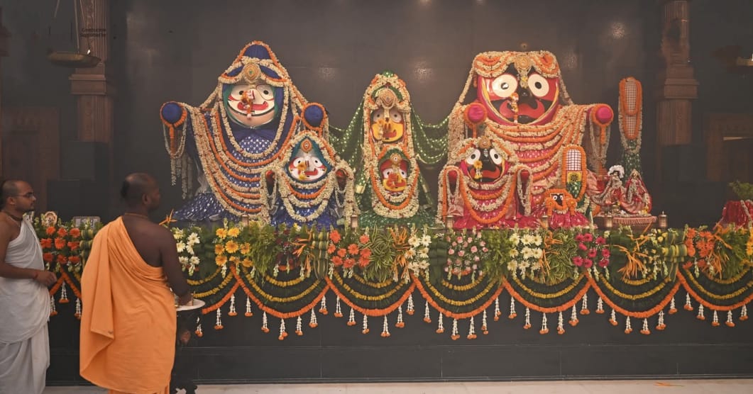 এদিন সকাল ৬.১৭ মিনিট নাগাদ জয় জগন্নাথ ধ্বনীর সঙ্গে খুলে দেওয়া হয় জগন্নাথের দুয়ার (Digha Jagannath Dham)। মন্দির সূত্রে খবর, ভোর চারটে নাগাদ ঘুম থেকে তোলা হয়েছে প্রভু জগন্নাথকে। এরপর প্রতীকী স্নানের পর জগন্নাথ ও তার ভাই বোনেদের নতুন পোশাক পরিয়ে সাজিয়ে তোলা হয়। এরপর মঙ্গল আরতির মাধ্যমে জগন্নাথ দর্শনের জন্য খুলে যায় গর্ভগৃহের দরজা। ১৫ দিন পরে আজই প্রথম চালের ভোগ অর্পণ করা হবে জগন্নাথকে। তাই আজ দুপুরে ৫৬ ভোগে থাকছে এলাহী আয়োজন। বিকেলে রশি পুজোয় অংশ নেবেন মুখ্যমন্ত্রী মমতা বন্দ্যোপাধ্যায়।