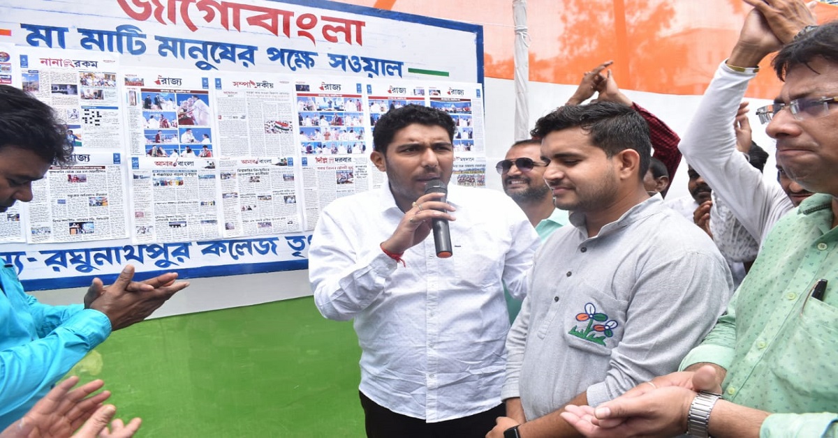 আজ পুরুলিয়ার রঘুনাথপুর কলেজে তৃণমূল ছাত্র পরিষদের উদ্যোগে ‘জাগোবাংলা’ বোর্ড উদ্বোধন করলেন পশ্চিমবঙ্গ তৃণমূল ছাত্র পরিষদের রাজ্য সভাপতি তৃণাঙ্কুর ভট্টাচার্য। ছিলেন জেলা তৃণমূল ছাত্র পরিষদের সভাপতি কিরীটী আচার্য ও স্থানীয় নেতৃত্ব। আগামী দিনে তৃণমূল ছাত্র পরিষদের পক্ষ থেকে বাংলার সব কলেজ বিশ্ববিদ্যালয়ের ফটকে জাগোবাংলা বোর্ড লাগানোর কর্মসূচি নেওয়া হচ্ছে।