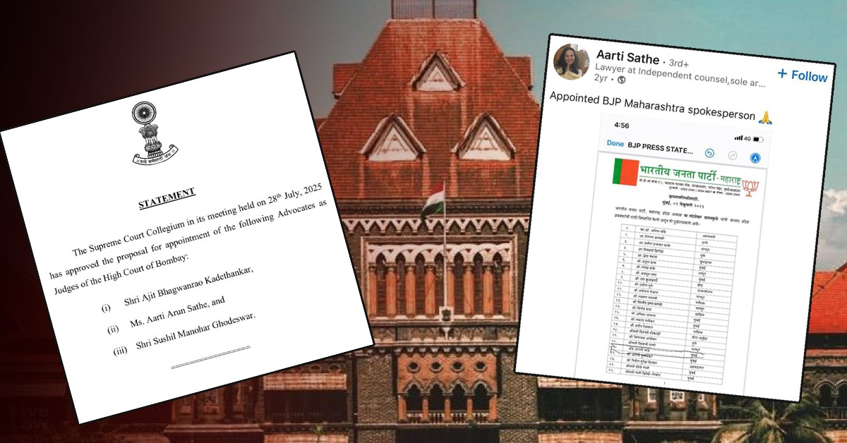 দেশের বিচার ব্যবস্থায় আর এক নির্মম পরিহাস! বিজেপির (BJP) শাসনে এতটাই নগ্ন ‘সিস্টেম’ যে, কখনও বিচারপতিরা হন সাংসদ, আবার কখনও পার্টির মুখপাত্র বনে যান বিচারপতি! আর কত নগ্ন হবে বিজেপি! বোম্বে হাইকোর্টের বিচারপতি হিসেবে মহারাষ্ট্রে ভারতীয় জনতা পার্টির মুখপাত্র আরতি সাঠে নিযুক্ত হওয়ার পর সোশ্যাল মিডিয়ায় সরব হলেন তৃণমূলের আইটি সেলের প্রধান দেবাংশু ভট্টাচার্য।