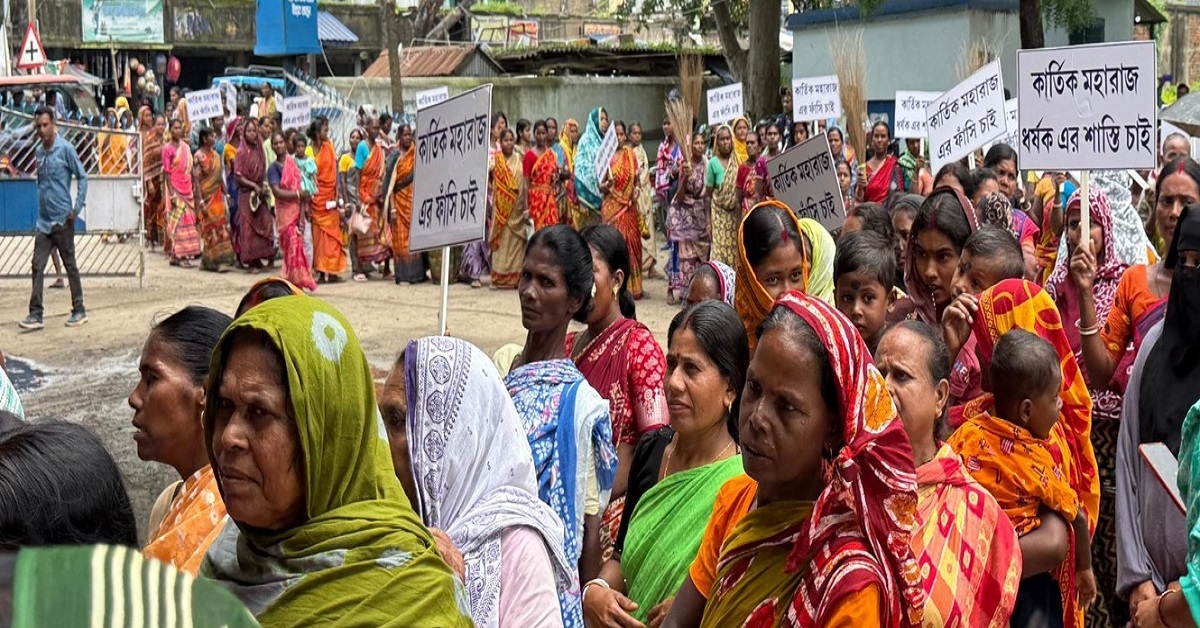 প্রতিবেদন : ধর্ষণের অভিযোগে অভিযুক্ত কার্তিক মহারাজের গ্রেফতারির দাবিতে উত্তাল হল বেলডাঙা। মঙ্গলবার সকাল থেকে নবগ্রাম থানার সামনে মিছিল করে অবস্থান-বিক্ষোভ করেন গ্রামের মহিলারা। তাঁদের হাতে ছিল প্ল্যাকার্ড-পোস্টার। সেখানে লেখা রয়েছে ধর্ষকের শাস্তি চাই। আজ সকাল ১০টায় নবগ্রাম থানায় তদন্তকারী অফিসারদের কাছে জিজ্ঞাসাবাদের জন্য হাজিরা দেওয়ার জন্য নোটিশ পাঠানো হয়েছিল অভিযুক্তকে। কিন্তু কার্তিক মহারাজ হাজিরা না দিয়ে গ্রেফতারি এড়াতে কলকাতা হাইকোর্টে মামলা করেন। বিচারপতি জয় সেনগুপ্তর এজলাসে এই মামলা হয়েছে। আগামীকাল বুধবার হবে শুনানি।