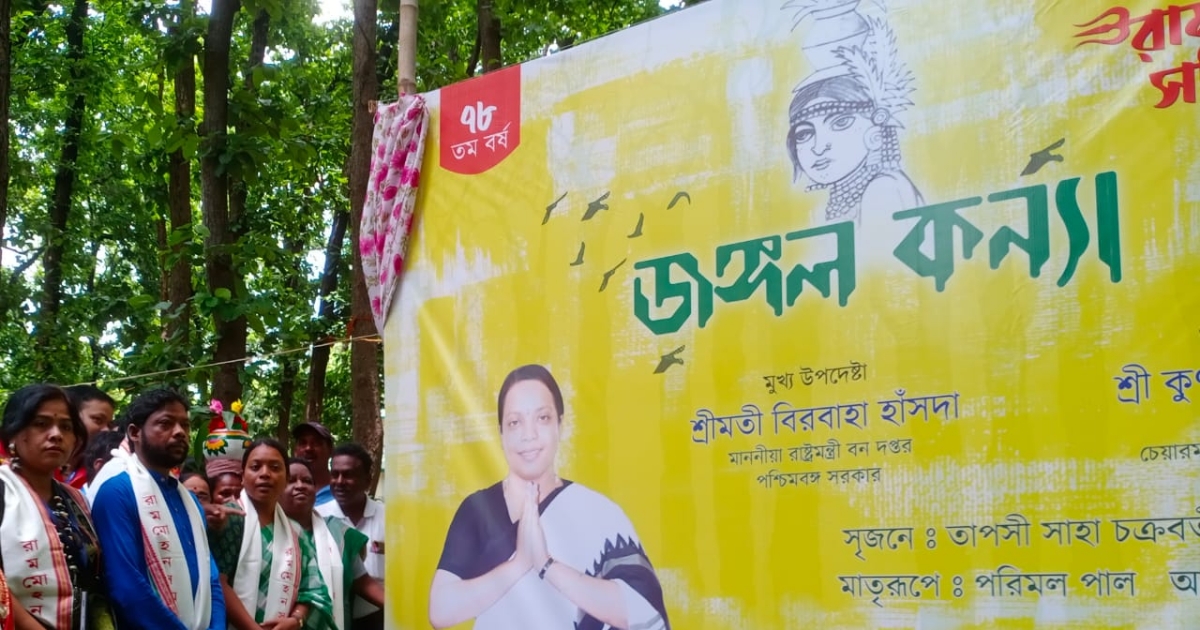 অভিনব! শনিবার জঙ্গলমহলের মাটিতে দাঁড়িয়ে কলকাতার পুজোর ‘জঙ্গলকন্যা’ থিম উদ্বোধন। রামমোহন সম্মলিনীর (Rammohan Sammilani) এবারের দুর্গাপুজোর থিম জঙ্গলকন্যাদের জীবন, শিল্প, সংস্কৃতি,ঐতিহ্য। ব্র্যান্ড অ্যামবাস্যাডর মন্ত্রী বীরবাহা হাঁসদা।