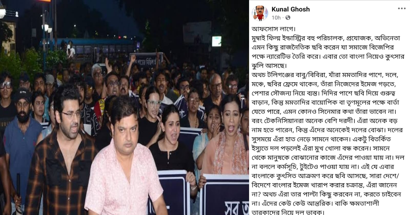 প্রতিবেদন : বাংলার ভাবমূর্তি নষ্ট করতে বিজেপির জুরি মেলা ভার। একাধিকবার সেই চেষ্টা হয়েছে। ফের হচ্ছে। এবার হাতিয়ার একটি ছবি। এক পরিচালক বিজেপির প্ররোচনা ও উসকানিতে ‘দ্য ডায়েরি অফ ওয়েস্ট বেঙ্গল’ নামে একটি ছবি তৈরি করেছেন। সেখানে তথ্য বিকৃতি-সহ মিথ্যা ঘটনা, সাম্প্রদায়িত সম্প্রীতি নষ্ট হতে পারে এই ধরনের বিষয় তুলে ধরে বাংলার বিরুদ্ধে বিষোদ্গার করা হয়েছে। স্বাভাবিকভাবেই এর তীব্র প্রতিবাদ করেছে তৃণমূল কংগ্রেস। প্রাক্তন সাংসদ কুণাল ঘোষ তাঁর এক্স-হ্যান্ডেলে প্রতিবাদ জানিয়ে লিখেছেন, বাংলার ভাবমূর্তি নষ্ট করার জন্য ছবি রিলিজ করা হচ্ছে। এর সর্বত্র প্রতিবাদ হওয়া দরকার। মুম্বই ফিল্ম ইন্ডাস্ট্রির বহু পরিচালক, প্রযোজন, অভিনেতা এমন কিছু রাজনৈতিক ছবি তৈরি করেন যা সমাজে বিজেপির পক্ষে ন্যারেটিভ তৈরি করে। এবার তো বাংলা নিয়েও কুৎসার ঝুলি আসছে। কুণালের বক্তব্য, দেশ বিদেশে বাংলার ইমেজ খারাপ করার চক্রান্ত চলছে। সকলে মিলে প্রতিবাদে গর্জে ওঠা দরকার। তা না হলে এভাবে একতরফা অপপ্রচার, বাংলাকে কলুশিত করার নোংরা চক্রান্ত চলতেই থাকবে। তিনি মনে করেন, বাংলা থেকেও পাল্টা কিছু ছবি করা দরকার। বিশেষ করে টলিউডের পরিচালক, প্রযোজক, অভিনেতাদের এবিষয়ে এগিয়ে আসা উচিৎ।