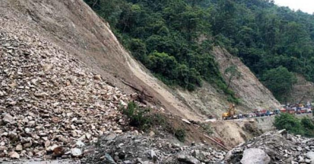 রাস্তায় নেমেছে বিপর্যয় মোকাবিলা দল। ধস নেমে রাস্তা বন্ধ হয়ে যাওয়ায় এক লেন দিয়েই চলাচল করছে গাড়ি।
