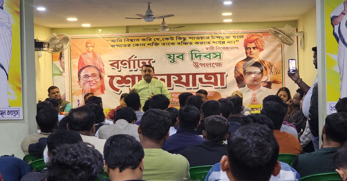 সংবাদদাতা, হাওড়া : আগামী ১২ জানুয়ারি স্বামী বিবেকানন্দের জন্মদিবস। সেই উপলক্ষে এবার ‘যুব শোভাযাত্রা’র আয়োজন করল হাওড়া সদর যুব তৃণমূল কংগ্রেস। এই শোভাযাত্রার নেতৃত্বে থাকবেন সংগঠনের সভাপতি কৈলাশ মিশ্র। বেলগাছিয়া থেকে বেলুড় মঠ পর্যন্ত ওই যুব শোভযাত্রায় হাওড়া সদরের সমস্ত বিধায়ক, মন্ত্রী সহ সমস্ত ব্লকের তৃণমূল যুব কংগ্রেসের কর্মীরা উপস্থিত থাকবেন। বুধবার হাওড়া জেলা তৃণমূলের কার্যালয়ে ওই যুব শোভাযাত্রার প্রস্তুতি সভা করেন যুব তৃণমূল কংগ্রেসের হাওড়া সদরের সভাপতি কৈলাশ মিশ্র। উপস্থিত ছিলেন সদরের প্রতিটি ব্লকের যুব তৃণমূলের সভাপতি সহ নেতৃত্বরা।