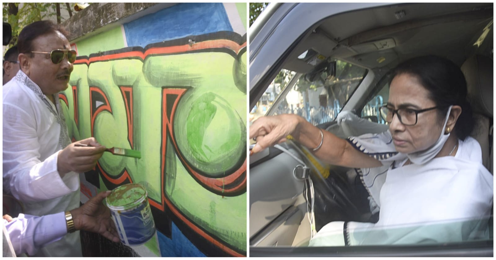 আজ, রবিবার দুপুরে তৃণমূল বিধায়ক মদন মিত্রের নেতৃত্বে ভবানীপুরে দেওয়াল লিখন চলছিল। যে কাজে মদনবাবু নিজেও হাত লাগিয়েছেন। আর ঠিক তখনই কলকাতা পুরসভার ৭১ নম্বর ওয়ার্ডে ডিএল খান রোড ধরে যাচ্ছিল মমতা বন্দ্যোপাধ্যায়ের কনভয়।