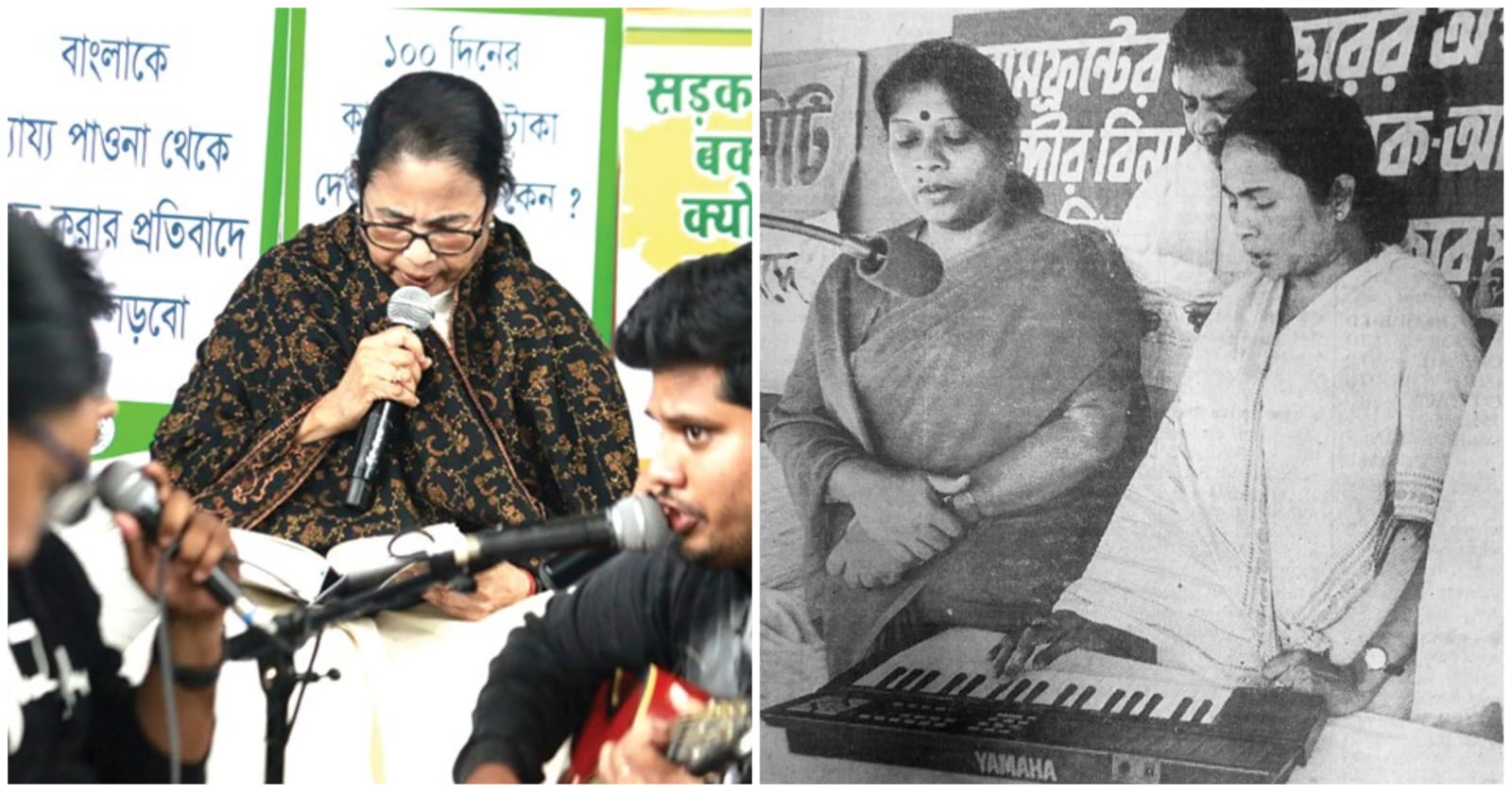 প্রতিবাদে রাস্তায় মমতা বন্দ্যোপাধ্যায়। ধর্মতলা। মেট্রো সিনেমার উল্টো দিক। ধরনা চলছে। প্রতিবাদে মুখর নেত্রী ধরনা মঞ্চেই ধরলেন কলম। লেখা শুরু করলেন। পাশে সতীর্থ নেত্রী মালা রায়। ‘সংগ্রাম-সংগ্রাম-সংগ্রাম/জীবনের অপর নাম সংগ্রাম/সংকট পেরিয়ে চলতে হবে’… তৈরি হল গান। সুর দিলেন। তারপর কিবোর্ড বাজিয়ে গাইলেন সকলে মিলে। সময় পেরিয়েছে। বহু মঞ্চে এই গান গাওয়া হয়েছে। জনপ্রিয়তার শিখর ছুঁয়েছে। প্রায় ২৮-২৯ বছর পর আবার ধরনা মঞ্চে নেত্রী, মুখ্যমন্ত্রী। সেই গান আবার ফিরে এল রেড রোডের মঞ্চে। সকলে মিলে গাইলেন ‘সংগ্রাম-সংগ্রাম’। গলা মেলালেন নেত্রী। এবং কী আশ্চর্য, ২০২৪-র ৩ ফেব্রুয়ারির সন্ধ্যায় নেত্রী পাশে মালা রায়, সাংসদ-কলকাতা পুরসভার চেয়ারপার্সন। ফিরে এল ইতিহাস। যার সাক্ষী হয়ে রইল রেড রোডের জনস্রোত। গানে গানে উত্তাল হলেন প্রতিবাদী জনতা।