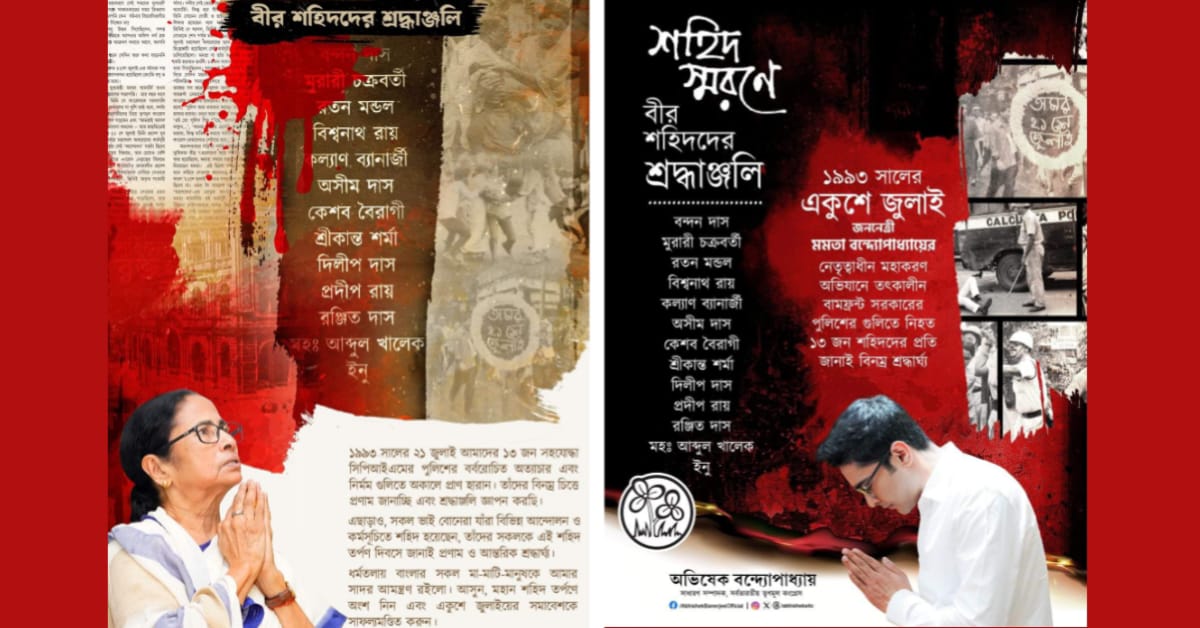আজ ২১শে জুলাই। প্রতি বছরের মতো এবারও তৃণমূল কংগ্রেসের তরফে ‘শহিদ দিবস’ (Shahid Dibas) পালন করা হচ্ছে। ১৯৯৩ সালের মমতা বন্দ্যোপাধ্যায়ের নেতৃত্বাধীন মহাকরণ অভিযানে সিপিআইএমের চরম অত্যাচারের স্মৃতিকে স্মরণে রেখে, নিহত ১৩জন শহিদকে শ্রদ্ধা জানিয়ে সোশ্যাল মিডিয়ায় পোস্ট করলেন তৃণমূল সুপ্রিমো মমতা বন্দ্যোপাধ্যায়। শহিদ দিবসে সকলকে শ্রদ্ধা জানানোর পাশাপাশি আজকের ধর্মতলার সমাবেশে উপস্থিত থাকার জন্য মা মাটি মানুষকে আমন্ত্রণ জানিয়েছেন মুখ্যমন্ত্রী।