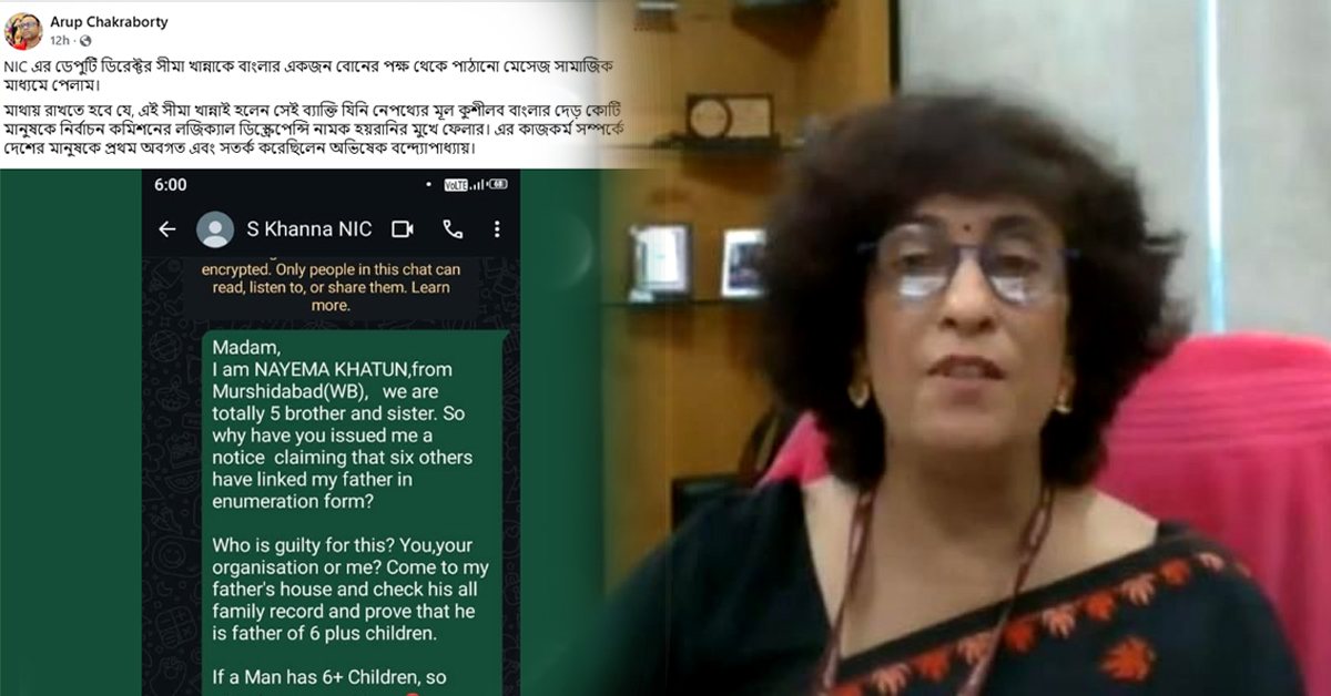অপরিকল্পিত এসআইআরের কুশীলব সীমা খান্নার প্রতি একটি আবেদন বাংলার কন্যার, কিছু প্রশ্ন