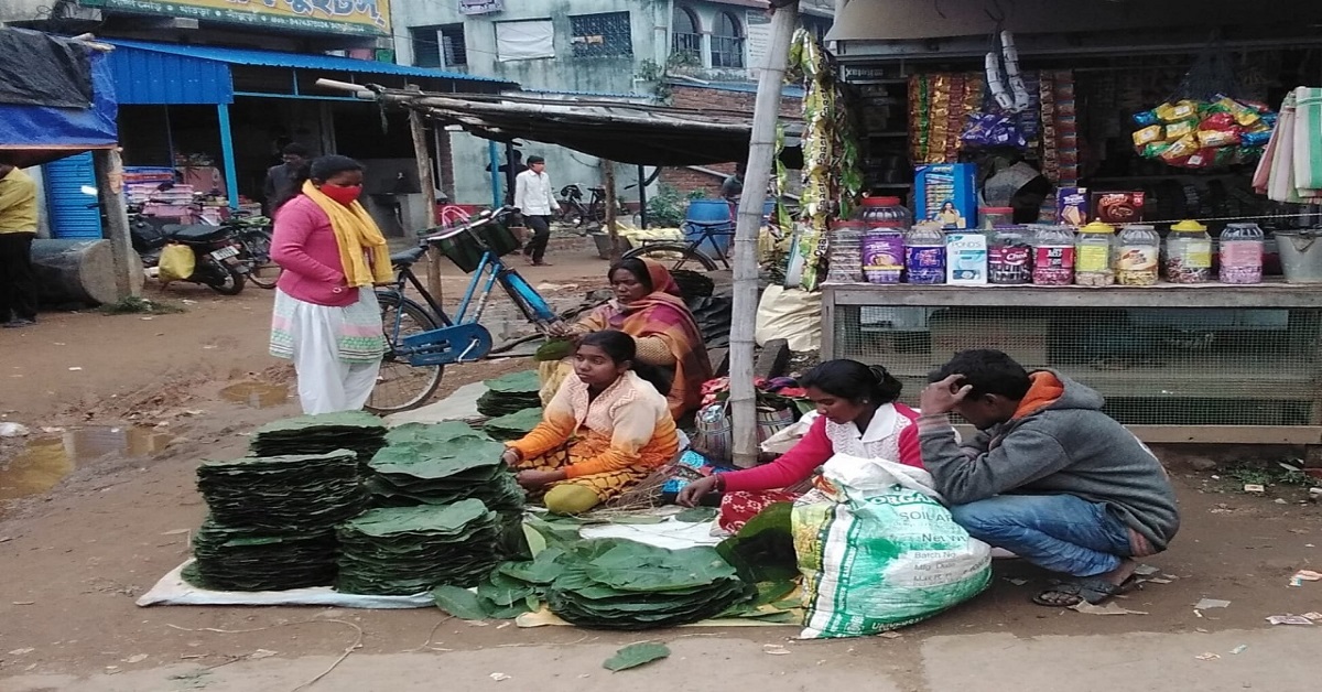বাঁকুড়ার জঙ্গলমহলে আদিবাসী এবং কৌম গোষ্ঠী সংখ্যায় বেশি। বৃহস্পতিবার রাইপুর, সারেঙ্গা, খাতড়া–সহ বিভিন্ন বাজারে গিয়ে দেখা গেল, আদিবাসী মহিলারা বস্তায় করে শালপাতা তুলে এনেছেন। সঙ্গে এনেছেন নিমের কাঠি। যার যতগুলি প্রয়োজন, ততগুলি সঙ্গে সঙ্গে সেলাই করে দিচ্ছেন। প্রতি সেলাই পাতা বিক্রি হচ্ছে দু টাকা করে। খাতড়ায় বারিকুলের বারুডি গ্রামের গৃহবধূ মালতি কিস্কু, মিঠাম গ্রামের অঞ্জলি বাস্কে জানালেন, করোনা আবহে বাজারে লোকজন কম হলেও মাংসপিঠে করতে কাঁচা সেলাই শালপাতার চাহিদা একই আছে। এই সময়ে আমরা সকলেই কম করে ৭০০ থেকে ১২০০ টাকা আয় করি।
