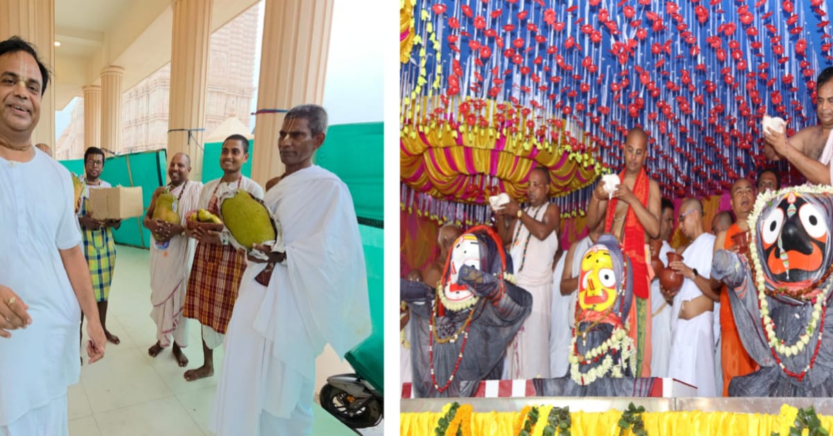 সংবাদদাতা, দিঘা : জগন্নাথদেবের স্নানযাত্রা তৈরি করল এক ঐতিহাসিক মুহূর্ত। ঘড়িতে ঠিক ন’টা বাজতেই গর্ভগৃহে বেজে ওঠে কাঁসরঘণ্টা। প্রবল বৃষ্টির মধ্যেও শুরু হল পাহাণ্ডি বিজয়। মুখ্যমন্ত্রী মমতা বন্দ্যোপাধ্যায়ের বাড়ি থেকে বুধবার সকাল সকাল জগন্নাথদেবের ভোগের জন্য পৌঁছে যায় গাছপাকা আম, কাঁঠাল ও বিভিন্ন মিষ্টান্ন। স্নানযাত্রার পরে ৫৬ ভোগের সঙ্গে সেগুলি অর্পণ করা হয় জগন্নাথদেবকে।