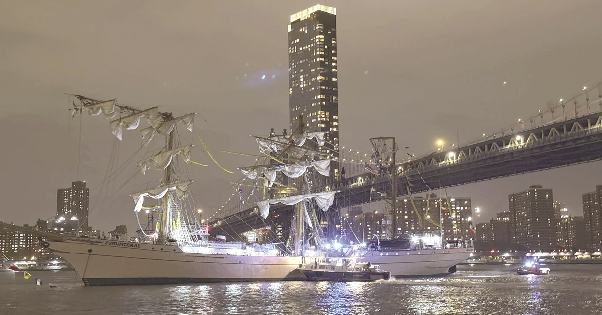 প্রতিবেদন: নিউইয়র্কের ব্রুকলিন সেতুতে (Brooklyn Bridge) ধাক্কা মেক্সিকোর নৌবাহিনীর আলোকমালায় সজ্জিত জাহাজের। প্রাণ হারালেন জাহাজের দু’জন। গুরুতর জখম হয়েছেন অন্তত ১৯ জন। ২৭৭ জন নাবিককে নিয়ে নদী দিয়ে নিউইয়র্কের দিকে ভেসে চলেছিল জাহাজটি। নদীর ধারে তখন অজস্র কৌতূহলী মুখের ভিড়। শনিবার রাতা সাড়ে ৮টা নাগাদ ঘটনাটি ঘটে। ঠিক যেন হলিউড সিনেমা। সেতুর উচ্চতা অনেক কম জেনেও সোজা চালিয়ে দেওয়া হল জাহাজ। তাতেই একের পর এক ১৪৭ ফুট উচ্চতার তিনটি মাস্তুল ভেঙে গেল একেবারে দেশলাই কাঠির মতো। ভাঙা মাস্তুলের উপর থেকে ঝুলে রইলেন কিছু নাবিক। তবুও জাহাজ এগিয়ে চলল। গোটা নিউইয়র্ক শহর এই দৃশ্য দেখে আঁতকে উঠল।