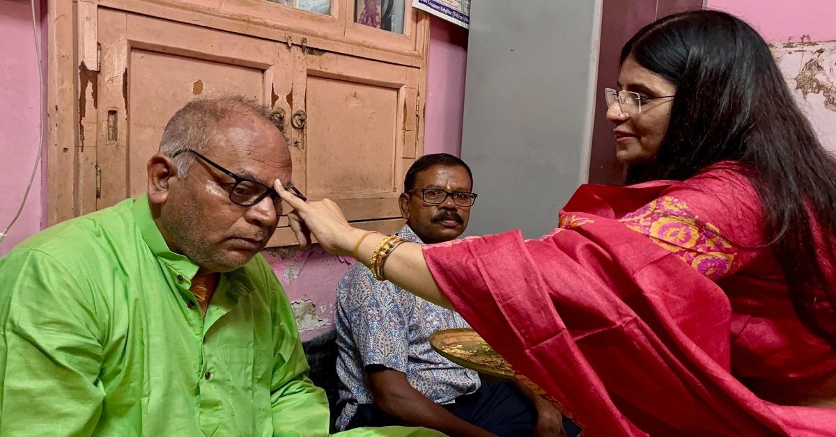 সংবাদদাতা, বোলপুর : ভাইফোঁটা নিলেন মন্ত্রী চন্দ্রনাথ সিংহ। নিজের বাড়িতে ছোট বোনের হাতে ভাইফোঁটা নিলেন। প্রত্যেকবার এই ভাইফোঁটার দিনে মন্ত্রীমশাই কোনও কাজ রাখেন না। পুরো দিনটা বোনেদের সঙ্গে সময় কাটান। চন্দ্রনাথ বলেন, তাঁর দুই বোন ছন্দা ঘোষ ও রুমকি মল্লিক। এবার বিশেষ কারণে বড় বোনের এক আত্মীয় মারা যাওয়ায় ভাইফোঁটা দিতে পারেনি তবে সে এসেছে। ছোট বোন রুমকি মল্লিকের হাতে তিনি ফোঁটা নিয়েছেন।