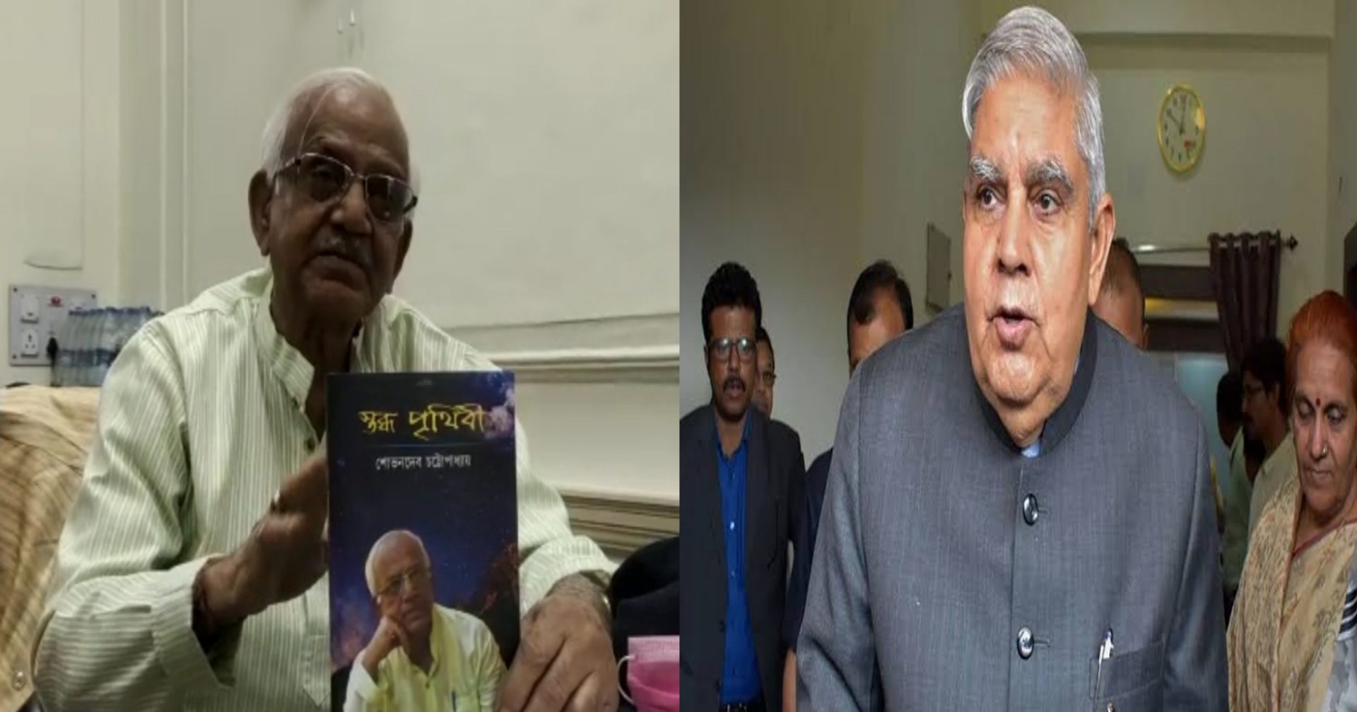 রাজ্যের সাথে রাজ্যপালের সংঘাত অব্যাহত। রাজ্য সরকারের একাধিক বিষয় নিয়ে বারংবার সংঘাতে জড়িয়েছেন রাজ্যপাল। এবার নিজের লেখা কবিতায় রাজ্যপাল জগদীপ ধনকড়কে কড়া ভাষায় কটাক্ষ করলেন রাজ্যের মন্ত্রী শোভনদেব চট্টোপাধ্যায় (Sovandeb Chattopadhyay)। আজ বৃহস্পতিবার শোভনদেব চট্টোপাধ্যায়ের নিজের লেখা বই ‘স্তব্ধ পৃথিবী’ প্রকাশ করেন। সেখানেই একটি কবিতায় শোভনদেব চট্টোপাধ্যায় লেখেন,