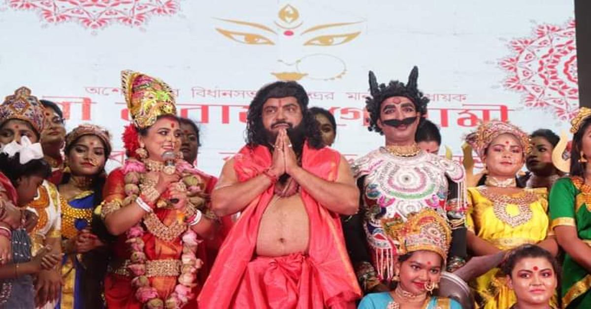 সংবাদদাতা, অশোকনগর : মঞ্চে গান গেয়ে আগেই সুনাম কুড়িয়েছিলেন অশোকনগরের বিধায়ক তথা উত্তর ২৪ পরগনা জেলা পরিষদের পূর্ত ও পরিবহণের কর্মাধ্যক্ষ নারায়ণ গোস্বামী (MLA Narayan Goswami)। তারপর ক্যামেরার সামনেও তাঁকে অভিনয় করতে দেখা গিয়েছে। এবার সরাসরি মঞ্চে গান গেয়ে অভিনয় করে মাত করলেন দর্শকদের। রবিবার সন্ধ্যায় তাঁর বিধানসভা কেন্দ্র অশোকনগরের শিববাড়ি ময়দানে মহালয়ার দিন অশোকনগর-কল্যাণগড় পুরসভার ব্যবস্থাপনায় আয়োজিত আগমনি উৎসবের মহিষাসুরমর্দিনী নাটকে অভিনয় করতেন নারায়ণ (MLA Narayan Goswami)। নাটকে সাধকের চরিত্রটি অত্যন্ত সুন্দরভাবে ফুটিয়ে তোলেন। এ-ছাড়াও এদিন বিশেষ আকর্ষণ হিসাবে পুরুলিয়ার ছৌ-নাচ ও মহিলা-ঢাকিরা নৃত্য পরিবেশন করেন।