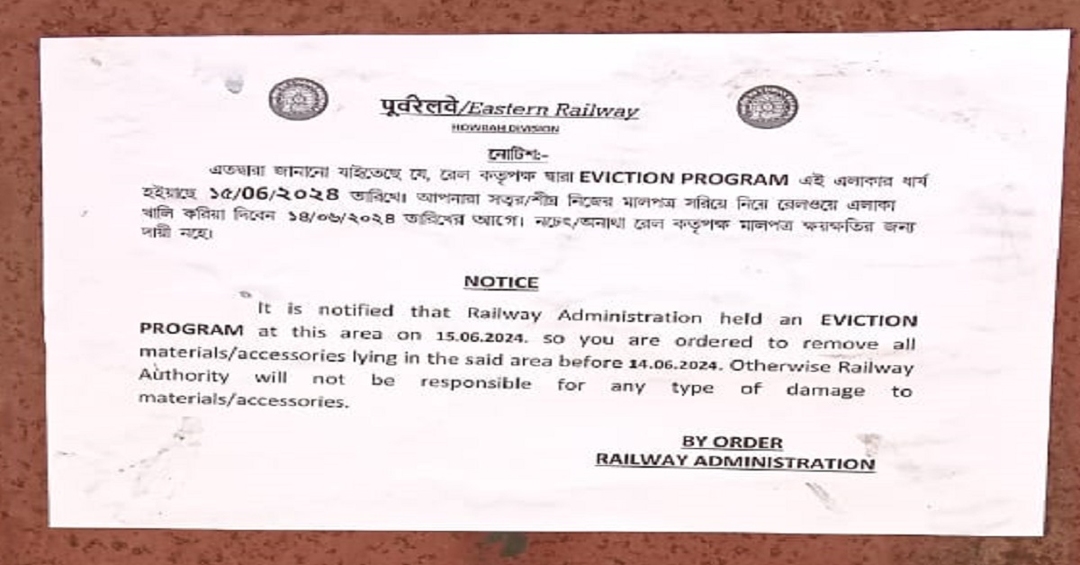 প্রসঙ্গত, রেলপাড়ের এই বাজারে তেলেভাজা, খাবার, মিষ্টি, মাংস থেকে সবজি ও ফলের দোকান ইত্যাদিও আছে। এই সব দোকানের সামান্য আয় থেকেই ছোট ব্যবসায়ীদের সংসার চলে। ফলে নোটিশ পাওয়ার পর থেকেই এলাকার মানুষের মধ্যে ব্যাপক ক্ষোভ দানা বেঁধেছে। আতঙ্কগ্রস্ত হয়ে পড়েছেন এলাকাবাসী থেকে ক্ষুদ্র ব্যবসায়ীরা। চা-বিক্রেতা পিন্টু দাস, সেলুনের মালিক জিতেন ঠাকুর, মোবাইল সারাই মিস্ত্রি নজরুল আনসারি, মুরগির মাংসবিক্রেতা জহির শেখরা একযোগে জানান, এই উচ্ছেদ হলে আমাদের সংসার ভেসে যাবে। আমরা হাজার হাজার মানুষ কর্মহীন হয়ে পড়ব। আমাদের জীবনজীবিকা নিয়ে কেন্দ্রীয় সরকারের রেল ছিনিমিনি খেলছে। সরকার তৈরি করেছে আমাদের মতো সাধারণ মানুষ। অথচ মানুষের পেটেই লাথি মারতে চাইছে কেন্দ্রীয় সরকার। সাধারণ মানুষের স্বার্থবিরোধী হলে, তাদের মুখের খাবার কেড়ে নিতে চাইলে এই সরকারের দরকার কী? বুধবার রেলপাড় বাজারে রেল কর্তৃপক্ষ যে উচ্ছেদের নোটিশ দিয়েছেন তাতে প্রমাণিত, রেলের জায়গা খালি করে আদানির হাতে তুলে দিয়ে মোদি অমৃত ভারতের নামে আসলে আদানি ভারত প্রতিষ্ঠা করতে চাইছেন। ১৫ জুন মানুষই আগের মতোই আন্দোলনের মাধ্যমে এই উচ্ছেদ রুখবে।