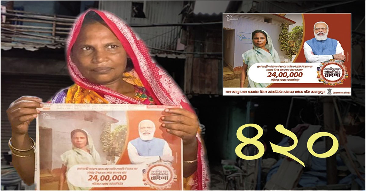 প্রতিবেদন : ভোটের ময়দানে বিজ্ঞাপনী ভাঁওতাবাজিতে প্রধানমন্ত্রী নরেন্দ্র মোদিই যে সবচেয়ে বড় খেলুড়ে, সেটা আবারও প্রমাণ হয়ে গেল বিজেপির রঙচঙে বিজ্ঞাপনে। সংবাদপত্রের অর্ধেক পৃষ্ঠা জুড়ে দেওয়া আবাস যোজনার বিজ্ঞাপন (Fake Advertisement) দিয়ে অপপ্রচার করছে বিজেপি। সেই বিজ্ঞাপনে প্রধানমন্ত্রীর মডেলমার্কা ছবির সঙ্গে রয়েছে এক প্রৌঢ়ার ছবি। বিজ্ঞাপনে দাবি করা হয়েছে, প্রধানমন্ত্রীর আবাস যোজনার সুবিধা পেয়ে মাথার উপরে ছাদ পেয়েছেন ওই মহিলা। শুধু তাই নয়, ওই প্রৌঢ়ার মতো আরও ২৪ লক্ষ মানুষও নাকি প্রধানমন্ত্রী আবাস যোজনায় মাথার উপর ছাদ পেয়ে আত্মনির্ভর হয়ে উঠেছে। কিন্তু আদতে গল্পটা একেবারেই আলাদা। সেই গল্পই ফাঁস করল একটি বেসরকারি সংবাদমাধ্যম। তারা খুঁজে বের করেছে প্রধানমন্ত্রীর সেই ভুয়ো বিজ্ঞাপনের প্রৌঢ়াকে। আর সেই প্রৌঢ়া লক্ষ্মীদেবীকে খুঁজে পেতেই ফাঁস হয়ে গেল ভোট-রাজনীতিতে বিজেপির বিজ্ঞাপনী (Fake Advertisement) মিথ্যাচার। আবাস যোজনার সুবিধা পাওয়া তো দূর-অস্ত্, আবাস যোজনার নাম পর্যন্ত শোনেননি ওই প্রৌঢ়া। থাকেন মাসে ৫০০ টাকার ভাড়া বাড়িতে। এমনকী কখন যে বিজেপির ভণ্ড বিজ্ঞাপন নির্মাতারা তাঁর ছবি তুলেছেন, তাও জানেন না তিনি। সংবাদমাধ্যমের প্রশ্নের উত্তরে লক্ষ্মীদেবী জানালেন, ফেব্রুয়ারিতে কলকাতার বাবুঘাটে আমি ১০ দিন কাজ করেছিলাম। সেই সময়ই হয়ত আমার অজান্তেই আমার ছবি তোলা হয়েছে। একদিন সকালে সবাই খবরের কাগজ এনে দেখাল সেখানে আমার ছবি বেরিয়েছে। তিনি আরও জানালেন, আবাস যোজনার কোনও সুবিধা পাইনি আমি। দীর্ঘ ৫০ বছর ধরে আমি এই ভাড়া বাড়িতেই থাকি। বিজ্ঞাপনে দাবি করা সমস্ত কথা ১০০ শতাংশ মিথ্যা।
