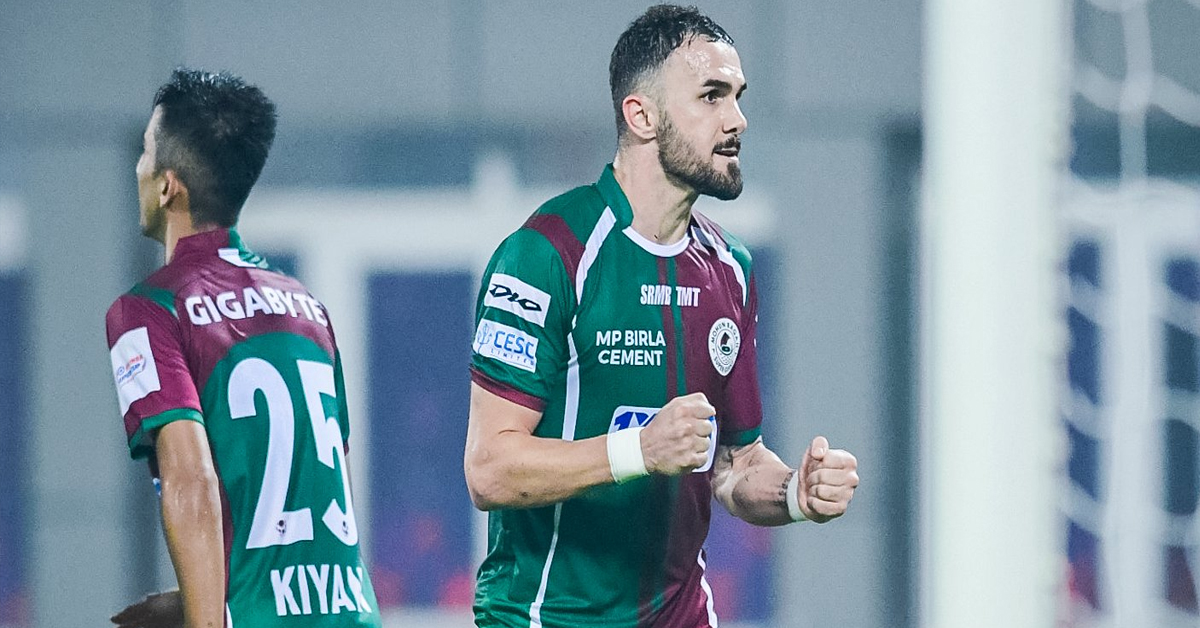 আই লিগের দলের বিরুদ্ধে পাঁচ বিদেশিকে প্রথম একাদশে রেখে দল সাজিয়েছিল মোহনবাগান (Mohun Bagan- Sreenidi Deccan)। হুগো বুমোস, দিমিত্রি পেত্রাতোসদের সঙ্গে জুনিয়র দলের অভিষেক সূর্যবংশী, আর্শ আনোয়ার, রাজ বাসফোররা নজরা কাড়েন। ২৮ মিনিটে মোহনবাগান রক্ষণের ভুলে এগিয়ে যায় আই লিগের ক্লাবটি। সবুজ-মেরুন ডিফেন্ডার সুমিত রাঠি অহেতুক বল ছাড়াই ফাইনাল ট্যাকল করেন শ্রীনিধির লালরোমাভিয়াকে। রেফারি পেনাল্টির নির্দেশ দিলে বল জালে জড়াতে ভুল করেননি শ্রীনিধির ব্রাজিলীয় ফরোয়ার্ড উইলিয়াম আলভেস অলিভিয়েরা। পিছিয়ে পড়ে ৩৯ মিনিটেই গোল শোধ করে দেয় মোহনবাগান। বক্সের বাইরে থেকে অভিষেকের লব পোস্টে লেগে ফিরলে ফাঁকা গোলে বল ঠেলেন কামিন্স। পুরো পয়েন্ট তোলার লক্ষ্যে দ্বিতীয়ার্ধে অনেক ভাল ফুটবল খেলে মোহনবাগান। একের পর এক আক্রমণ তুলে আনেন দিমিত্রি, আশিস রাই, সাদিকুরা। ৭১ মিনিটে গোল করে দলকে এগিয়ে দেন সাদিকু। ডেকান বাকি সময়ে চেষ্টা করেও গোল শোধ করতে পারেনি। অভিষেক লাল কার্ড দেখায় শেষ ১৫ মিনিট দশজনে খেলে সবুজ-মেরুন।
