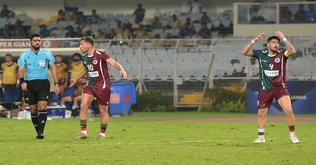 চিত্তরঞ্জন খাঁড়া: যুবভারতীর ভিআইপি গ্যালারির উল্টোদিকের মিডল টিয়ার থেকে ঝুলছিল একটি ব্যানার। তাতে লেখা, ‘এগিয়ে চলেছে নৌকা’। ঠিক তার উপরেই সবুজ-মেরুন সমর্থকদের আরও একটি ব্যানারে জ্বলজ্বল করছিল, ‘পরম্পরা, আবেগ, ঐক্য’। প্রিয় দলের জন্য সমর্থকদের আবেগ, ঐক্য থাকবেই। কিন্তু চলতি মরশুমে সবুজ-মেরুন নৌকার পালে যে এখনও ঝোড়ো হওয়া লাগল না। শক্তিশালী দল নিয়েও বারবার আটকে যাচ্ছে নৌকা। ডুরান্ড ফাইনালের পুনরাবৃত্তি দেখা গিয়েছে মুম্বইয়ের বিরুদ্ধে আইএসএলের উদ্বোধনী ম্যাচে। বুধবার এএফসি চ্যাম্পিয়ন্স লিগ টু-তেও অপেক্ষাকৃত কমজোরি দল তাজিকিস্তানের রভশান এফসি-কে হারাতে পারল না জোসে মোলিনার দল। ম্যাচ গোলশূন্য ড্র। কোচের রক্ষণাত্মক স্ট্র্যাটেজি, প্রথম একাদশ নির্বাচনে গলদ, জেসন কামিন্স, দিমিত্রি পেত্রাতোসদের গোল নষ্টের খেসারত দিয়ে জয় হাতছাড়া মোহনবাগানের।