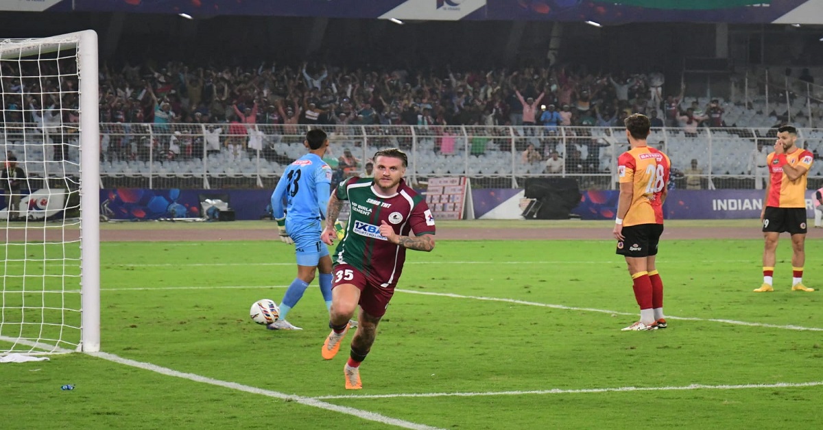 বিরতির আগেই তিন গোল করে ম্যাচ নিজেদের করে নেয় মোহনবাগান। ২৭ মিনিটে দিমিত্রির শট ইস্টবেঙ্গল গোলকিপার প্রভাসুখন গিল ক্লিয়ার করলে ফিরতি বল জালে জড়িয়ে দেন কামিন্স। ৩৬ মিনিটে দ্বিতীয় গোল মোহনবাগানের। এবারও গোলের পাস দিমিত্রির। অস্ট্রেলীয় তারকার শট পোস্টে লেগে ফিরলে ফের ইস্টবেঙ্গল বক্সে বল বাড়ান দিমিত্রি। লিস্টন বিনা বাধায় গোল করে যান। হিজাজি-সহ লাল-হলুদ রক্ষণ একই লাইনে দাঁড়িয়ে থাকে। আক্রমণে ঝড় তুলে বিরতির আগে তৃতীয় গোল তুলে নেয় হাবাসের দল। নিজেদের বক্সে নন্দ ফাউল করেন লিস্টনকে। পেনাল্টি থেকে গোল করেন দিমিত্রি।