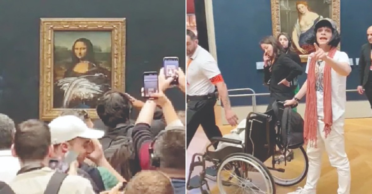 প্রতিবেদন : ফের আক্রান্ত ‘মোনালিসা’৷ অতুলনীয় শিল্পী লিওনার্দো দা ভিঞ্চির আঁকা বিশ্বের অন্যতম সেরা ছবি৷ রবিবার বিকেলে প্যারিসের ল্যুভের মিউজিয়ামে হুইলচেয়ারে করে প্রবেশ করেন এক বৃদ্ধা। মোনালিসার ছবির সামনে এসে হঠাৎই ওই বৃদ্ধা হুইলচেয়ার থেকে লাফিয়ে ওঠেন। বর্তমানে মোনালিসার ছবিটি বুলেটপ্রুফ কাচে ঢাকা থাকে। প্রথমে ওই বৃদ্ধা সেই কাঁচ ভাঙার চেষ্টা করেন। কিন্তু ব্যর্থ হন। এরপর আক্রোশে ক্যানভাসের উপরে কেক ছুঁড়ে দেন। কাঁচের গায়েও মাখিয়ে দেন কেক। শুরু হয় শোরগোল৷ নিরাপত্তারক্ষীরা সঙ্গে সঙ্গেই ওই বৃদ্ধাকে ধরে ফেলেন। তখন দেখা যায় বৃদ্ধার ছদ্মবেশে থাকা এক মাঝবয়সি ব্যক্তির কাণ্ড এটি৷