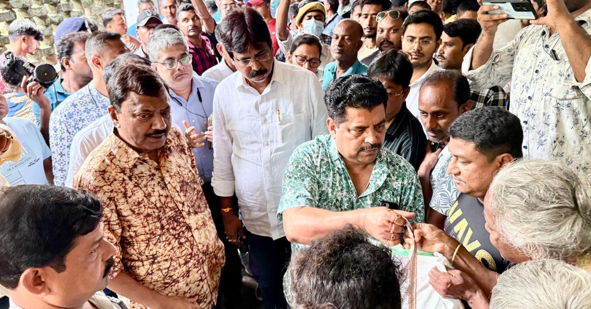 সংবাদদাতা, বনগাঁ : মুখ্যমন্ত্রী মমতা বন্দ্যোপাধ্যায়ের নির্দেশে উত্তর ২৪ পরগনার বনগাঁর দুর্যোগ কবলিত এলাকা পরিদর্শন করলেন বারাকপুরের সাংসদ পার্থ ভৌমিক, জেলা পরিষদের সভাধিপতি নারায়ণ গোস্বামী, বনগাঁ (Bongaon) সাংগঠনিক জেলা সভাপতি তথা প্রাক্তন বিধায়ক বিশ্বজিৎ দাস। বুধবার ত্রাণশিবিরে আশ্রয় নেওয়া মানুষদের মধ্যে ত্রাণসামগ্রী বিতরণ করা হয়।