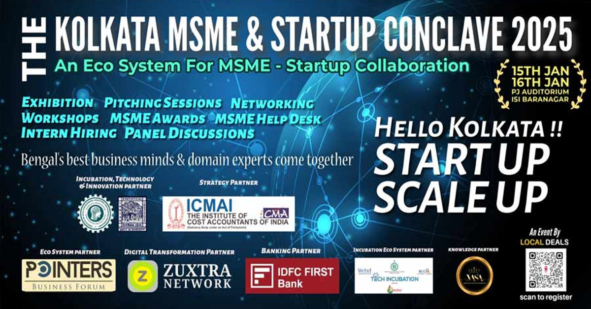 বাংলার যুব সমাজকে শিল্পোদ্যোগী করে তুলতে নেওয়া হচ্ছে নয়া উদ্যোগ। এবার এমএসএমই ও স্টার্টআপ কনক্লেভের আয়োজন করা হচ্ছে কলকাতায়। মহানগরের বুকে এই ইভেন্টে ২০টি এমএসএমই ও স্টার্টআপ অংশ নেবে। এই এমএসএমই ও স্টার্ট আপগুলি (MSME and Startup Conclave 2025) পণ্য প্রদর্শন করবে কনক্লেভে। ১৫ ও ১৬ জানুয়ারি দুদিন ধরে চলবে কনক্লেভ। কলকাতার প্রথম এমএসএমই ও স্টার্টআপ কনক্লেভের আসর বসছে বরানগরের ইন্ডিয়ান স্ট্যাটিসটিক্যাল ইনস্টিটিউটের প্ল্যাটিনাম জুবিলি অডিটোরিয়ামে। টেক ইনোভেশন হাব আইডিয়াস-আইএসআই ও স্টার্টআপ জুক্সট্রা নেটওয়ার্কের পক্ষ থেকে এই কমক্লেভের আয়োজন করা হয়েছে। এমএসএমই ও স্টার্টআপ কনক্লেভের (MSME and Startup Conclave 2025) লক্ষ্য পূর্ব ভারতের বাণিজ্যিক অগ্রগতি ঘটানো। তার অংশ হিসাবে বাংলার ক্ষুদ্র শিল্পে উদ্যোক্তা বৃদ্ধির লক্ষ্য নিয়েছেন আয়োজকরা। প্রথাগত পড়াশোনার পাশাপাশি বৃত্তিমূলক শিক্ষাতে ও ছাত্র-ছাত্রীদের আগ্রহ বাড়ানোর উদ্যোগ নেওয়া হয়েছে। এ ব্যাপারে বিশেষ মনোযোগী সরকার। বেসরকারি কলেজ, এমএসএমই ইউনিট ও নতুন স্টার্টআপগুলোও এই ধরনের কনক্লেভের মাধ্যমে আগামী প্রজন্মকে আগ্রহী করে তোলার কাজ চালাচ্ছে।