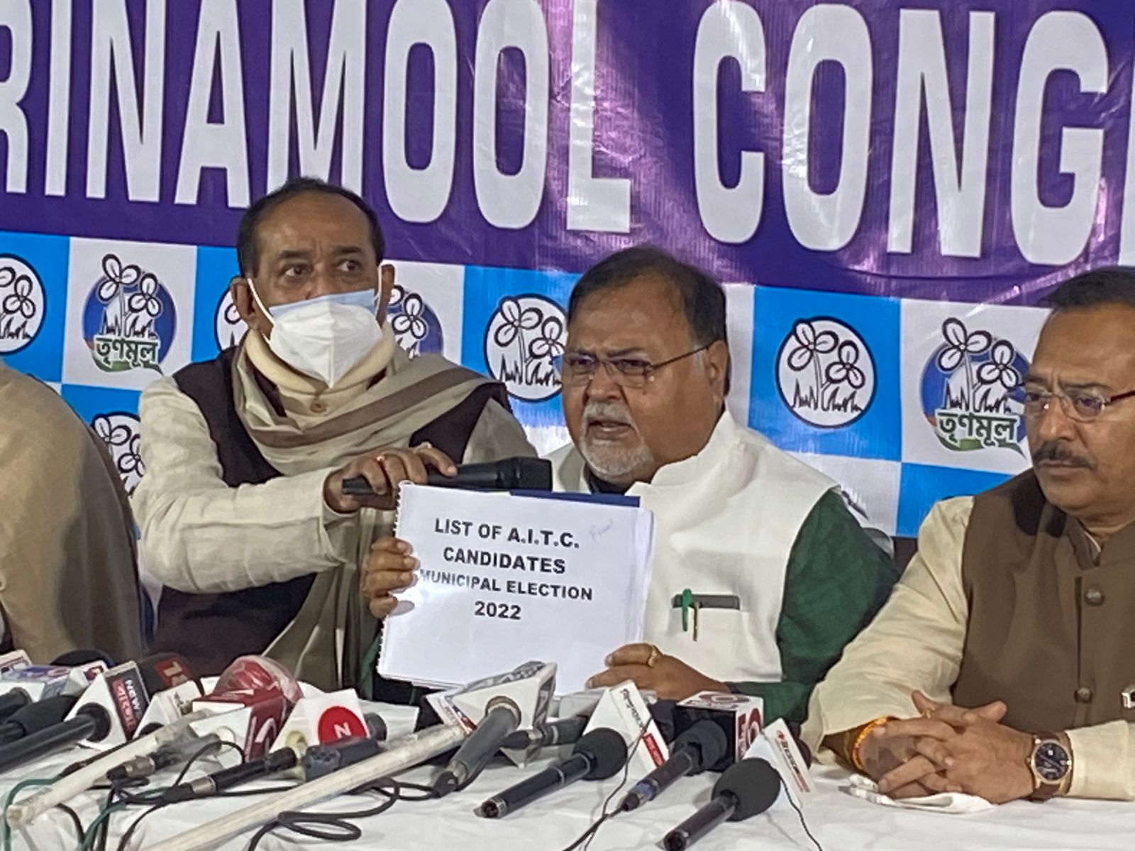 আসন্ন ১০৮টি পুরসভা ভোটের জন্য প্রার্থী তালিকা ঘোষণা করল রাজ্যের শাসক দল তৃণমূল কংগ্রেস (Trinamool Congress)। আজ, শুক্রবার দলের মহাসচিব পার্থ চট্টোপাধ্যায়, রাজ্য সভাপতি সুব্রত বক্সি, ফিরহাদ হাকিম অরূপ বিশ্বাস এবং চন্দ্রিমা ভট্টাচার্য-এর উপস্থিতিতে প্রার্থী তালিকা প্রকাশ করা হয়।