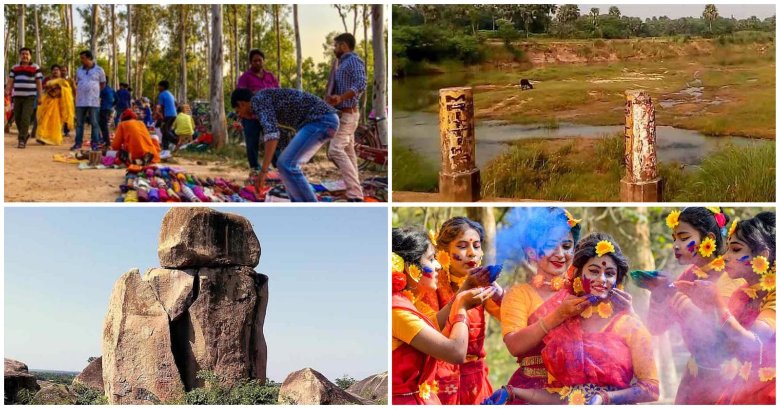 দোলের দিন ঘুরে আসুন বোলপুর শান্তিনিকেতন। কবিগুরু রবীন্দ্রনাথ ঠাকুরের প্রাণের ভূমি। তাঁর জন্য এখানে ঘটেছে সাহিত্য এবং সংস্কৃতির ঐতিহ্যের অনবদ্য মিশ্রণ। বসন্তে প্রকৃতি এখানে রূপের পশরা সাজিয়ে বসেছে। চোখ মেললেই দেখা যায় রাঙা পলাশ। অদূরেই কোপাই। এই নদীর মোহনীয়তা সবসময়ই দেশ-বিদেশের মানুষকে আকৃষ্ট করে। তীরে বসে শুনতে পাবেন বাউল গান। দোলের দিন শান্তিনিকেতনে কাটালে সত্যিই অন্যরকম অনুভূতি হবে। পলাশের সাজে সেজে ওঠেন বহু মানুষ। পরিবেশিত হয় নাচ, গান। চলে আবির খেলা। চাইলে অংশ নিতে পারেন রঙের খেলায়। দূর থেকে দেখলেও অর্জন করবেন বিরল অভিজ্ঞতা।