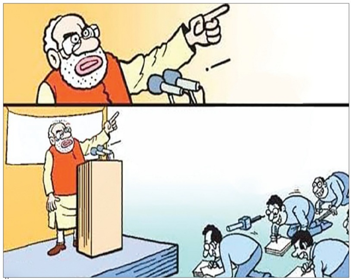 নোট বাতিল বা জিএসটির মতো ব্যর্থ প্রশাসনিক নীতিকে তিনি চাপা দিতে পারেন সার্জিক্যাল স্ট্রাইক দিয়ে, চূড়ান্ত আগ্রাসী হয়ে সংসদে দাঁড়িয়েই বিরোধীদের কর্মসূচিকে ‘নখরা’ বা ‘ন্যাকামো’ বলার সাহস দেখান, আবার মূল্যবৃদ্ধি বা বেকারত্বের মতো জ্বলন্ত ইস্যুকে ২৫ বছরের প্রতিশ্রুতি দিয়ে ভুলিয়ে রাখেন। এটাই মোদির গ্যারান্টি।