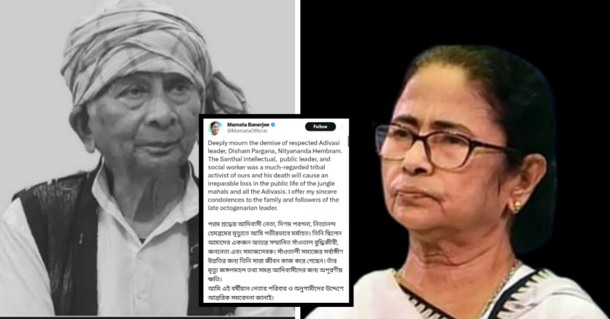 নিত্যানন্দ হেমব্রম (Nityananda Hembram) দিশম পরগনার একজন শ্রদ্ধেয় আদিবাসী নেতা। এদিন তাঁর মৃত্যুতে শোকবার্তা জ্ঞাপন করেছেন মুখ্যমন্ত্রী মমতা বন্দ্যোপাধ্যায় (Mamata Banerjee)। তিনি একজন অত্যন্ত সম্মানিত সাঁওতাল বুদ্ধিজীবী, জননেতা এবং সমাজসেবক। সাঁওতালী সমাজের উন্নতির জন্য তিনি সারা জীবন কাজ করে গেছেন।