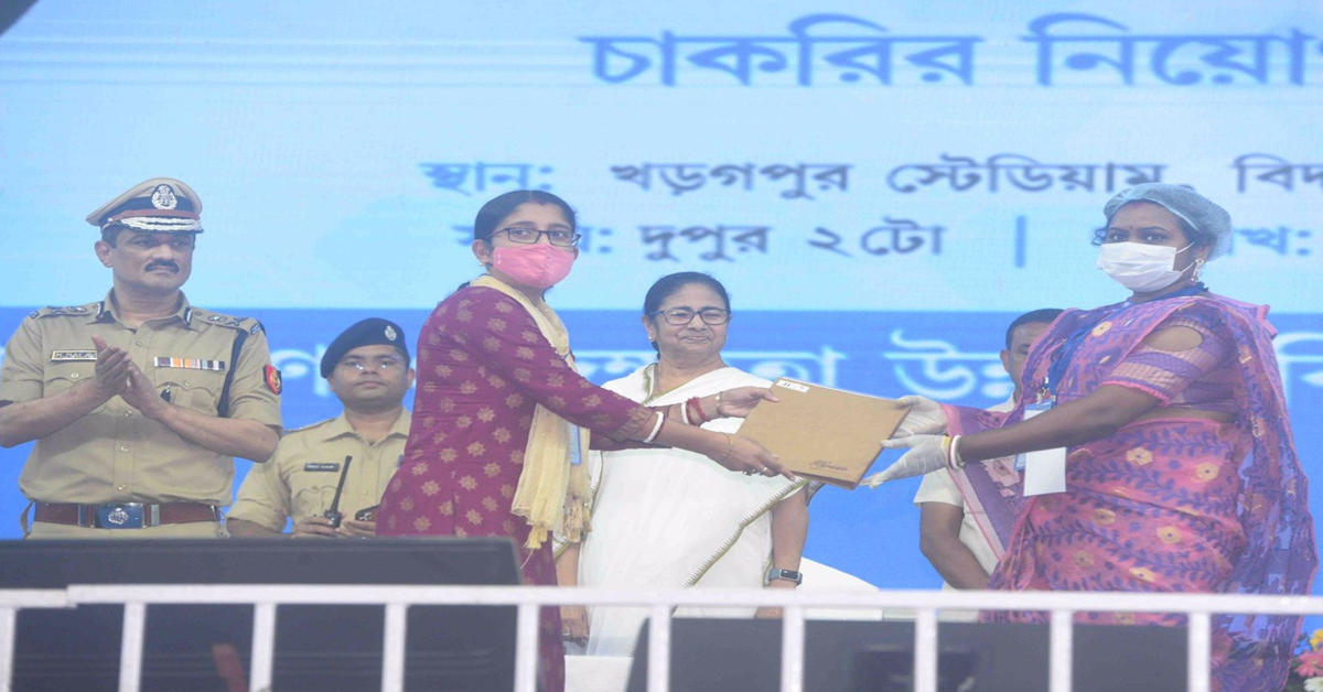 মুখ্যমন্ত্রীর উপস্থিতিতে নিয়োগপত্র প্রদান। বৃহস্পতিবার খড়্গপুর স্টেডিয়ামে