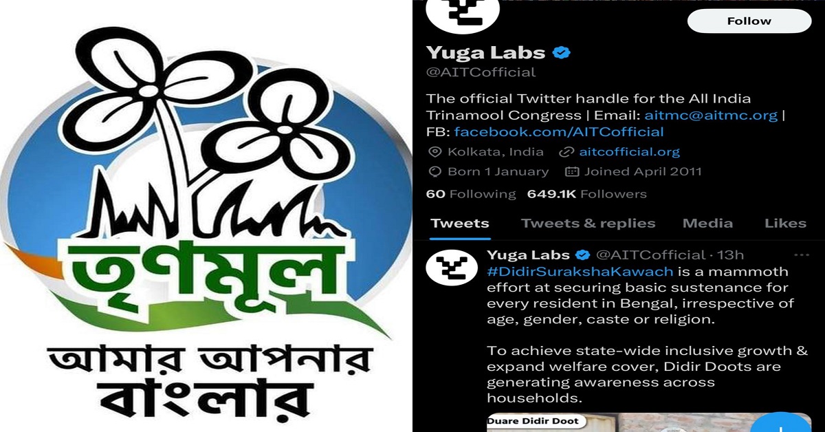 হ্যাক হয়ে গিয়েছে তৃণমূল কংগ্রেসের অফিসিয়াল ট্যুইটার অ্যাকাউন্ট। ট্যুইটারে তৃণমূলের মূল ভেরিফায়েড অ্যাকাউন্ট ছিল এআইটিসি অফিসিয়াল। সেই অ্যাকাউন্ট খুললেই সকাল থেকে দেখা যাচ্ছে সেই নাম পরিবর্তন হয়ে গিয়েছে। নাম হয়ে গিয়েছে Yuga Labs।