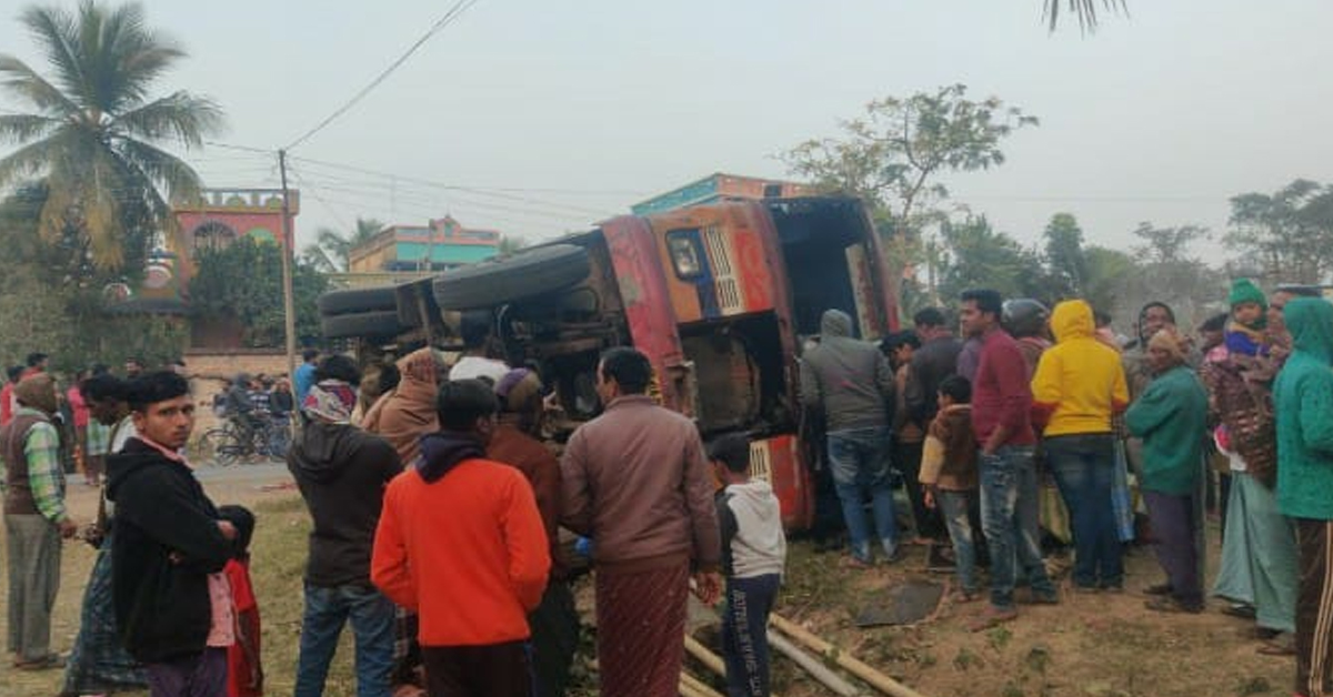 সংবাদদাতা, কাটোয়া : নিয়ন্ত্রণ হারিয়ে রাস্তার পাশেই উল্টে গেল যাত্রিবাহী বাস। কাটোয়া-বীরভূম (Bus Accident in katwa) রাজ্য সড়কে ন’নগরের কাছে, রবিবার। চাপা পড়ে ঘটনাস্থলেই মৃত্যু এক বাসযাত্রীর। জখম ৪০ জন যাত্রী। তিনজনের অবস্থা আশঙ্কাজনক। আহতদের উদ্ধার করে কাটোয়া মহকুমা হাসপাতালে ভর্তি করা হয়েছে। রমেশ ভুঁইয়া জানান, তীব্র গতিতেই বাস চলছিল। আচমকা রাস্তার উপরে উল্টে গেল। আমি কোনোক্রমে বেরিয়ে অন্যযাত্রীদের উদ্ধার করলাম। দীপালি সিংহ নামে এক যাত্রী বলেন, হঠাৎ বাস উল্টে গেল। বাসে ঠাসা যাত্রী ছিল। দুর্ঘটনায় মৃতের পরিচয় জানা যায়নি। কাটোয়া (Bus Accident in katwa) থানার পুলিশ জখমদের হাসপাতালে নিয়ে যায়। বাসের সামনের ডানদিকের স্প্রিংপাত্তি ভেঙেই দুর্ঘটনা বলে পুলিশ জানিয়েছে। চালক ও কর্মীরা পলাতক।