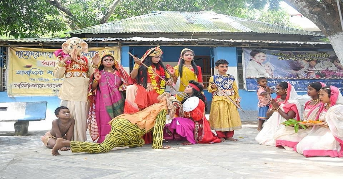 সংবাদদাতা, কাটোয়া : কেউ সাজে দুর্গা। কেউ অসুর। কেউ আবার লক্ষ্মী। এভাবেই অনাথ শিশুদের ঠাকুর সাজিয়ে ‘শিব জ্ঞানে জীব সেবা’র বার্তা দেন মন্ত্রী স্বপন দেবনাথ। নাদনঘাটের দামোদরপাড়ায় নিজের গড়া অনাথ ও বৃদ্ধাবাসের উঠোনে দাঁড়ানো মন্ত্রী স্বপন দেবনাথের দুর্গা-গণেশ-সরস্বতীরা হল বিপিন হাঁসদা, কাজল কিস্কু, দেবলীনা মাণ্ডিরা। বিজয়াদশমীর দিন পুজোমণ্ডপে মহামায়ার মৃন্ময়ী সংসারের পাশে কাজল, বিপিন, সুরলীনারা দুর্গা, অসুর, কার্তিক, গণেশ সেজে দাঁড়াবে। আর মানুষ-দেবতাদের আভূমিনত প্রণাম করে পুজো চড়াবেন মন্ত্রিমশাই।