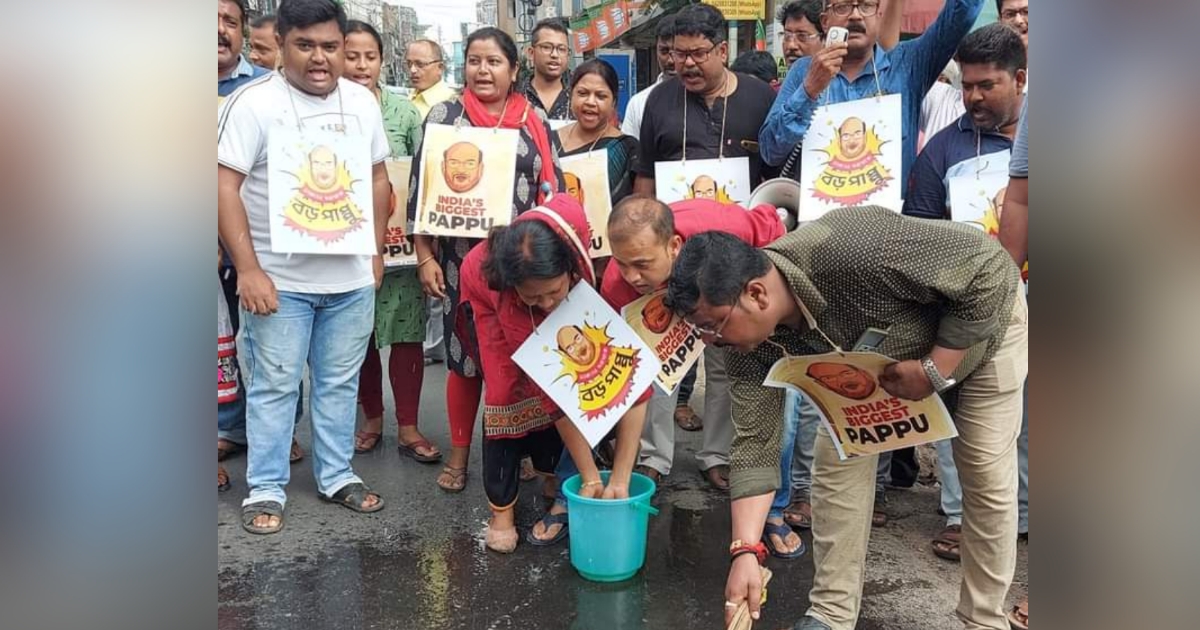 সংবাদদাতা, হুগলি : কেন্দ্রের বিজেপি সরকার তথা কেন্দ্রীয় স্বরাষ্ট্রমন্ত্রী অমিত শাহ(Pappu Poster-Rally) লাগাতার কেন্দ্রীয় এজেন্সি দিয়ে তৃণমূল নেতাদের, বিশেষত দলের সর্বভারতীয় সাধারণ সম্পাদক অভিষেক বন্দ্যোপাধ্যায়কে হেনস্থা করার চেষ্টা করছেন। অভিষেক বন্দ্যোপাধ্যায় তারই পাল্টা হিসাবে অমিত শাহকে সবচেয়ে বড় পাপ্পু আখ্যা দেন। তারই জের ধরে উত্তরপাড়ায় পাপ্পু পোস্টার (Pappu Poster-Rally) নিয়ে সাতসকালে তৃণমূল কংগ্রেসের মিছিল হল। সেখানে গঙ্গাজল দিয়ে রাস্তা ধুয়ে ধিক্কার মিছিল কর্মসূচিও পালন করল তৃণমূল। রবিবার বিজেপির তরফে একটি কর্মসূচি হয়। সেখানে ছিলেন বিরোধী দলনেতা শুভেন্দু অধিকারী। তৃণমূল কর্মীদের বক্তব্য, ‘উনি আসাতে অপবিত্র হয়েছে পথ। তাই এই শুদ্ধীকরণ।’ তৃণমূল রাজ্য কমিটির সম্পাদক বলেছেন, বিরোধী রাজনৈতিক দলের বিভিন্ন নেতা, বিরোধী দলনেতা, সর্বভারতীয় সহ-সভাপতি, লোকাল নেতারা পর্যন্ত মিথ্যে কথা বারবার বলে মানুষকে বিভ্রান্ত করার চেষ্টা করছেন। তাঁদের মিথ্যে কথাগুলির উত্তর দেওয়ার জন্যই আমরা আগামীকাল সভা করব। পাশাপাশি উত্তরপাড়ায় আজ সকালে তৃণমূল নেতা-কর্মীদের গলায় ‘পাপ্পু’ পোস্টার নিয়ে মিছিলের ইস্যুতে তিনি বলেন, ‘অমিত শাহ ইডি-সিবিআই দিয়ে যেভাবে রাজনৈতিক নেতা ও দলগুলিকে হেনস্থা করছেন, তার বিরুদ্ধে অভিষেক বন্দ্যোপাধ্যায় বলেছেন, দেশের সবচেয়ে বড় পাপ্পু দেশের স্বরাষ্ট্রমন্ত্রী। যে জায়গায় দাঁড়িয়ে উনি মিথ্যাচার করেছেন, সেই জায়গাতেই আমাদের দলের সহকর্মীরা আজকে প্রতিবাদ জানিয়েছেন।