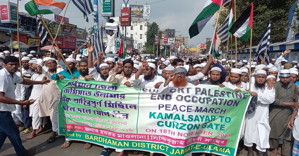 সংবাদদাতা, বর্ধমান : ইজরায়েল-ফিলিস্তিন যুদ্ধবিরতির স্লোগান তুলে পথে নামল জমিয়তে উলেমায়ে হিন্দ। শনিবার বর্ধমানের গোলাপবাগ মোড় থেকে কার্জন গেট পর্যন্ত বিশাল শান্তিমিছিলে পা মেলান কয়েক হাজার জমিয়তে উলেমায়ে হিন্দ সমর্থক।