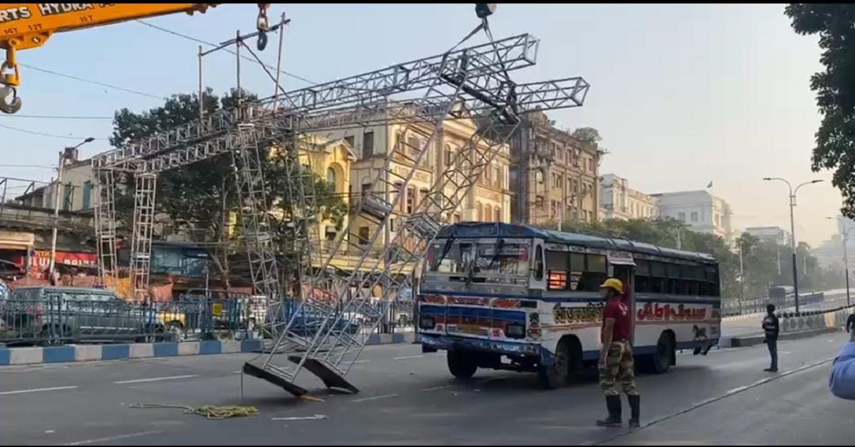 বড়দিনের (Christmass) আগে পার্ক স্ট্রিট ও সংলগ্ন অঞ্চলে চলছে আলোর সাজ। এদিন দুপুরে পার্ক স্ট্রিট ব্রিজের কাছে জওহরলাল নেহরু রোডে ধর্মতলার দিকে আসছিল সাঁতরাগাছি-শিয়ালদহ রুটের একটি বাস। সেই সময় একই রুটের আরেকটি বাসকে ওভারটেক করতে গিয়ে নিয়ন্ত্রণ হারিয়ে রঙিন আলোর গেটে ধাক্কা মারে বাসটি। তোরণ ভেঙে রাস্তার উপর পড়ে। ধর্মতলা-পার্ক স্ট্রিট অঞ্চলে এই দুর্ঘটনায় যানজট তৈরি হয়। বাসের চালককে ইতিমধ্যেই আটক করেছে পুলিশ।