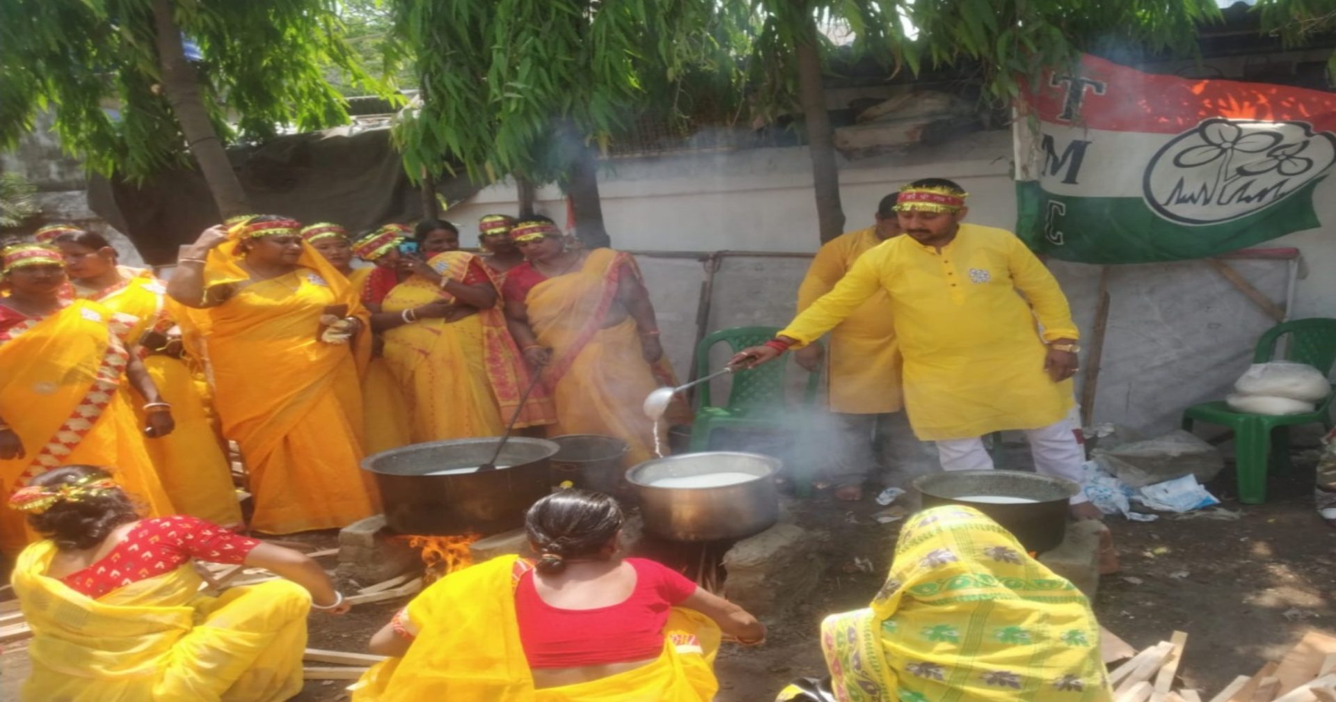 অভিনব প্রতিবাদ। গ্যাসের বদলে কাঠের আগুনে ভোগ রান্না। বেলুড়ে রামনবমী উদযাপন অনুষ্ঠানে জ্বালানির মূল্যবৃদ্ধির প্রতিবাদে এইভাবেই সরব হল তৃণমূল যুব কংগ্রেস। রবিবার যুব তৃণমূলের (Trinamool Congress) রাজ্য সম্পাদক কৈলাস মিশ্রের উদ্যোগে বেলুড়ের মহাবীরচক হনুমান মন্দিরের রামনবমী পালিত হয়। সেখানে স্থানীয় মহিলারা সহ যুব তৃণমূলের (Trinamool Congress) কর্মীরা জ্বালানির মূল্যবৃদ্ধির প্রতিবাদ জানাতে গ্যাসের পরিবর্তে কাঠের উনুন জ্বালিয়ে ভোগ রান্না করেন। সেইসঙ্গে কয়েকটি ফাঁকা গ্যাস সিলিন্ডারে মালা পরিয়ে সেগুলির প্রতীকী গঙ্গাপ্রাপ্তির আয়োজনও করা হয়। কৈলাস মিশ্র জানান, ‘‘জ্বালানির মূল্যবৃদ্ধির প্রতিবাদ জানাতে গ্যাসের পরিবর্তে আমরা কাঠের উনুন জ্বালিয়ে ঠাকুরের ভোগ রান্না করলাম। পুজোপাঠের সঙ্গে সঙ্গেই আমাদের দলের যুব কর্মীরা সবাই মিলে উনুন জ্বালিয়ে ভোগ রান্না করেছি।’’
