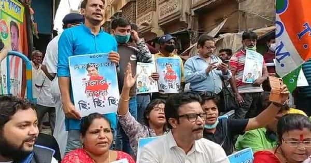 ত্রিপুরায় এই প্রথম নয় এর আগেও বহুবার আক্রান্ত হয়েছে তৃণমূল কংগ্রেস। বিজেপির পুলিশ অন্যায়ভাবে হেনস্থা করছে তৃণমূলের (Tmc) শীর্ষ নেতৃত্বকে। রবিবার তৃণমূলের যুব নেত্রী সায়নী ঘোষের গ্রেফতারে সেই বিবাদ তুঙ্গে উঠছে।থানার মধ্যে দফায় দফায় বিজেপির গুন্ডা বাহিনীর হাতে আক্রান্ত হতে হয়েছে তৃণমূল নেতৃত্বেকে। এর প্রতিবাদেই সোমবার সকালে কলকাতায় বিজেপির (Bjp) সদর দফতর ৬ নম্বর মুরলীধর সেন লেনের সামনে বিক্ষোভ দেখান তৃণমূল কংগ্রেসের নেতা-কর্মীরা। মমতা বন্দ্যোপাধ্যায় ও অভিষেক বন্দ্যোপাধ্যায়ের ছবি হতে স্লোগান দেন তাঁরা।