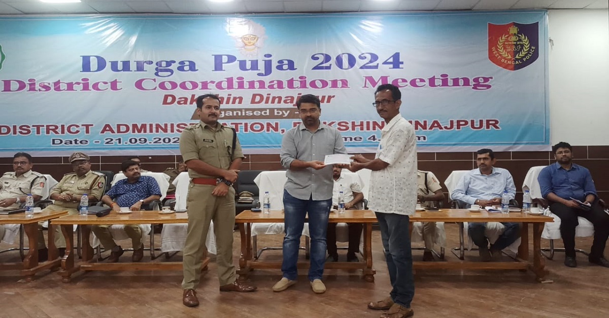 উত্তর দিনাজপুরের করণদিঘি ব্লকের টুঙ্গিদিঘিতে একটি অনুষ্ঠানের মধ্যে দিয়ে পুজো কমিটিদের হাতে অনুদানের চেক তুলে দেন করণদিঘি বিডিও জয়ন্ত দেবব্রত চৌধুরী, করণদিঘির আইসি সঞ্জয় ঘোষ এবং বিধায়ক গৌতম পাল। উপস্থিত ছিলেন পুজো কমিটির সদস্যরা। দুর্গাপুজোর শুভেচ্ছা বার্তা জানালেন করণদিঘির বিডিও-সহ আইসি ও বিধায়ক। সকলকে পুজোর অগ্রিম শুভেচ্ছা জানিয়েছেন বিধায়ক গৌতম পাল। এদিন দক্ষিণ দিনাজপুরের বালুরঘাটে বালুছায়া অডিটোরিয়াম হলে অনুষ্ঠিত হয় এই মিটিং। এদিনের এই মিটিংয়ে উপস্থিত ছিলেন দক্ষিণ দিনাজপুর জেলার জেলাশাসক বিজিন কৃষ্ণা, দক্ষিণ দিনাজপুর জেলার পুলিশ সুপার চিন্ময় মিত্তাল, অতিরিক্ত পুলিশ সুপার কার্তিক চন্দ্র মণ্ডল, জেলার মুখ্য স্বাস্থ্য আধিকারিক ডাঃ সুদীপ দাস, পশ্চিমবঙ্গ রাজ্য বিদ্যুৎ সরবরাহ কোম্পানি লিমিটেড মুখ্য ইঞ্জিনিয়ার শুভদীপ বন্দ্যোপাধ্যায়, ডিভিশনাল ফায়ার অফিসার শিবানন্দ বর্মন, বালুরঘাট থানার আইসি শান্তিনাথ পাঁজা।