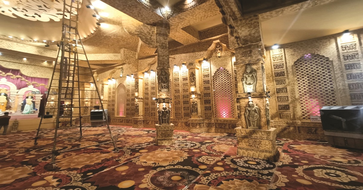 সুদেষ্ণে ঘোষাল, নয়াদিল্লি: দিল্লি কো-অপারেটিভ সমিতির এবারের পুজোর থিম রাজস্থানের সোনার কেল্লা। সুবর্ণ জয়ন্তীতে এই থিম মনে করিয়ে দিচ্ছে সত্যজিত রায়ের সোনার কেল্লাকে। মণ্ডপ সজ্জায় নিপুণ কারুকার্যে যেন জীবন্ত হয়ে উঠেছে এই কেল্লা। প্রায় ৬০ দিনের প্রচেষ্টায় গড়ে উঠেছে এই কৃত্রিম কেল্লা। একটি পিলারে তিনরকমের মুর্তি। প্রত্যেকটি প্লাইউডের তৈরি। পরিবেশের কথা ভেবে ব্যবহার করা হয়নি থার্মোকল। প্রতিমার গায়ে মেটালের তৈরি গয়নায় সোনালি রঙ চড়ানো হয়েছে। এবছর ১৯ ফুট উচু প্রতিমা গড়ে তোলা হয়েছে।