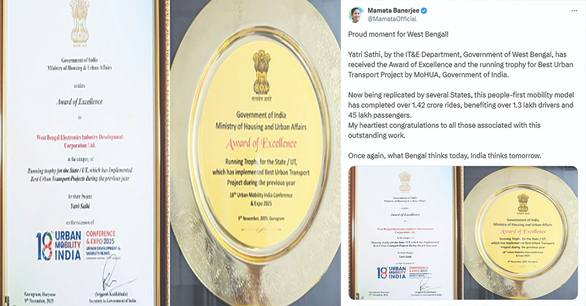 রাজ্য সরকার শহুরে পরিবহণ ব্যবস্থায় স্বচ্ছতা, নিরাপত্তা ও নাগরিক সুবিধাকে সর্বাধিক গুরুত্ব দিয়ে শুরু করেছিল ‘যাত্রী সাথী’ (Yatri Saathi)। ক্যাশলেস ট্রানজাকশন, রিয়েল-টাইম ম্যাপিং, নিরাপদ যাত্রা ছিল এই পরিবহণ ব্যবস্থার মূল লক্ষ্য। স্বল্প সময়ের মধ্যেই এই প্রকল্প জনপ্রিয় হয়ে ওঠে শহর কলকাতায়। বাংলাজুড়েই শহুরে পরিবহণে গুরুত্ব বাড়তে থাকে যাত্রী সাথী প্রকল্পের। এবং জাতীয় স্তরে তা ক্রমেই মডেল হয়ে ওঠে। মুখ্যমন্ত্রী এক্স বার্তায় জানান। এদিন পর্যন্ত ‘যাত্রী সাথী’ অ্যাপ ব্যবহার করে মোট ১.৪২ কোটির বেশি যাত্রা সম্পন্ন হয়েছে। উপকৃত হয়েছেন ১.৩ লক্ষেরও বেশি চালক এবং এই পরিষেবার সুবিধা পেয়েছেন প্রায় ৪৫ লক্ষ যাত্রী। রাজ্যের এই মডেল ইতিমধ্যেই দেশের একাধিক রাজ্য গ্রহণ করতে শুরু করেছে। ভারতকে পথ দেখাচ্ছে পশ্চিমবঙ্গ। মুখ্যমন্ত্রী লেখেন, এই স্বীকৃতি বাংলার জন্য গর্বের মুহূর্ত। এই অসাধারণ কাজের সঙ্গে যুক্ত সকলকে আমার আন্তরিক অভিনন্দন। আবারও প্রমাণ হল বাংলা আজ যা ভাবে, ভারত আগামীকাল তা ভাবে।