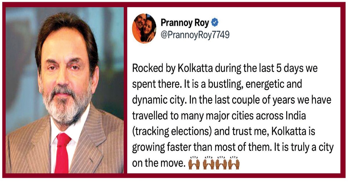 প্রণয় লিখেছেন, ক্রমশ বিশ্বের সেরা গন্তব্য হয়ে উঠছে কলকাতা। অন্য যেকোনও শহরের থেকেও কলকাতা অনেক বেশি প্রাণবন্ত, উচ্ছল, ডায়নামিক। যত দেখছি, মুগ্ধ হচ্ছি। দ্রুত আরও বেশি কলকাতা বেড়ে উঠছে। তাঁর সংযোজন, গত পাঁচদিন কলকাতাতে কাটিয়েছি, যত দেখছি তত বুঝতে পারছি এই শহরটা এনার্জি ও আধুনিকতায় ভরপুর হয়ে উঠেছে। বিদেশ-সহ দেশের সমস্ত শহরে কাটিয়েছি কিন্তু একটা কথা বলতেই হচ্ছে, কলকাতা বদলে গেছে। উন্নয়নের নিরিখে, আধুনিকতার নিরিখে কলকাতা দ্রুত বদলাচ্ছে। প্রণয় রায়ের মতো প্রখ্যাত সাংবাদিকের শহর কলকাতা সম্পর্কে এই উচ্ছ্বসিত প্রশংসা নিশ্চিতভাবে কলকাতা তথা বাংলার মান বাড়াল। বিরোধীদের মুখে ঝামা ঘষে দিল প্রখ্যাত সাংবাদিকের এই মন্তব্য। প্রকারান্তরে বুঝিয়ে দিলেন, প্রধানমন্ত্রীর মার্কেটিংয়ের থেকেও আসলে অনেক ভাল কাজ করেছেন বাংলার মুখ্যমন্ত্রী মমতা বন্দ্যোপাধ্যায়। তাই এই জায়গায় আসতে পেরেছে কলকাতা। শিল্প থেকে সংস্কৃতি, পরিবেশ থেকে পরিকাঠামো, ঝাঁ-চকচকে রাস্তা থেকে আধুনিক মন ও মানসিকতায় এগিয়ে কলকাতা। এগিয়ে বাংলা।