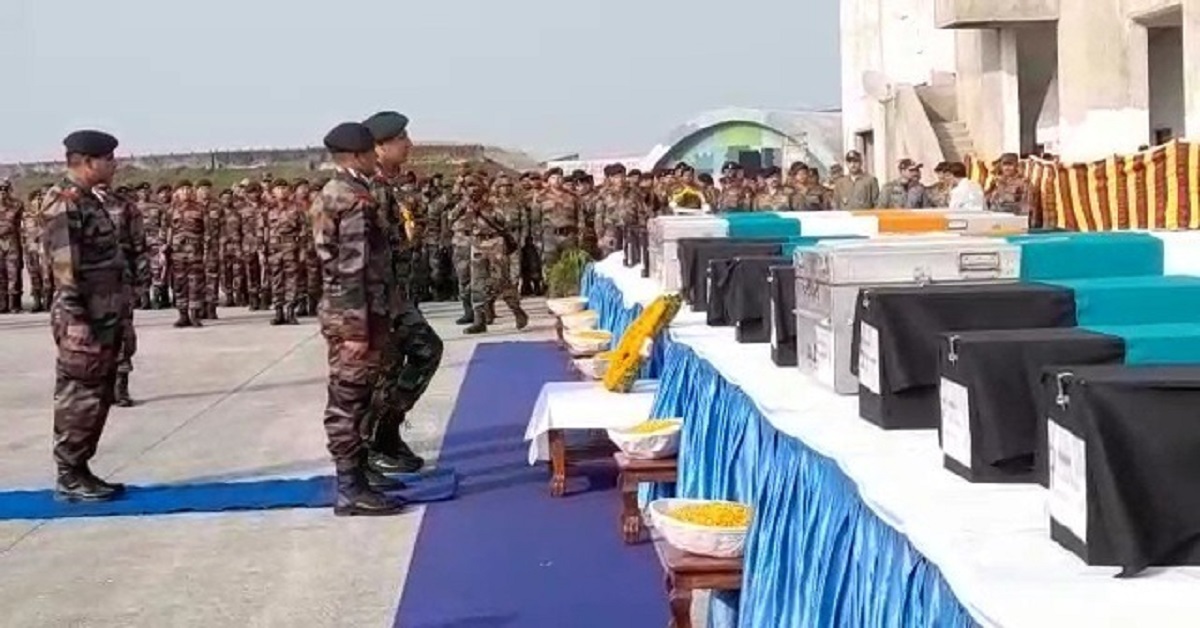 এছাড়াও সেনাবাহিনীর প্রচুর অধিকারিকও উপস্থিত ছিলেন। সেখানেই গান স্যালুটের মাধ্যমে শেষ শ্রদ্ধা জানানো হয়। সিকিমের রাজ্যপাল গঙ্গা প্রসাদ এদিন মৃত সেনাদের ফুল দিয়ে শ্রদ্ধা জানান। তিনি জানিয়েছেন, এই ঘটনা খুবই মর্মান্তিক। গোটা দেশের মানুষ শোকাহত। এয়ারফোর্স স্টেশন থেকে ১২ জন সেনার দেহ বায়ুসেনার বিশেষ বিমানে দেশের বিভিন্ন জায়গায় মৃত সেনাদের বাড়িতে পাঠানো হয়।